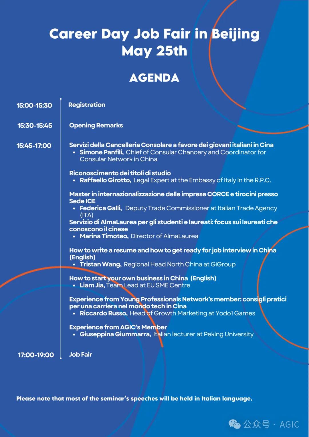 The China-Italy Chamber of Commerce together with Embassy of Italy to the P.R.C., the Association of Young Italians in China (AGIC), the Italian Cultural Institute in Beijing and the CICC Young Professional Network are pleased to inform you that the XI Edition of the Career Day will be held on May 25th in Beijing.