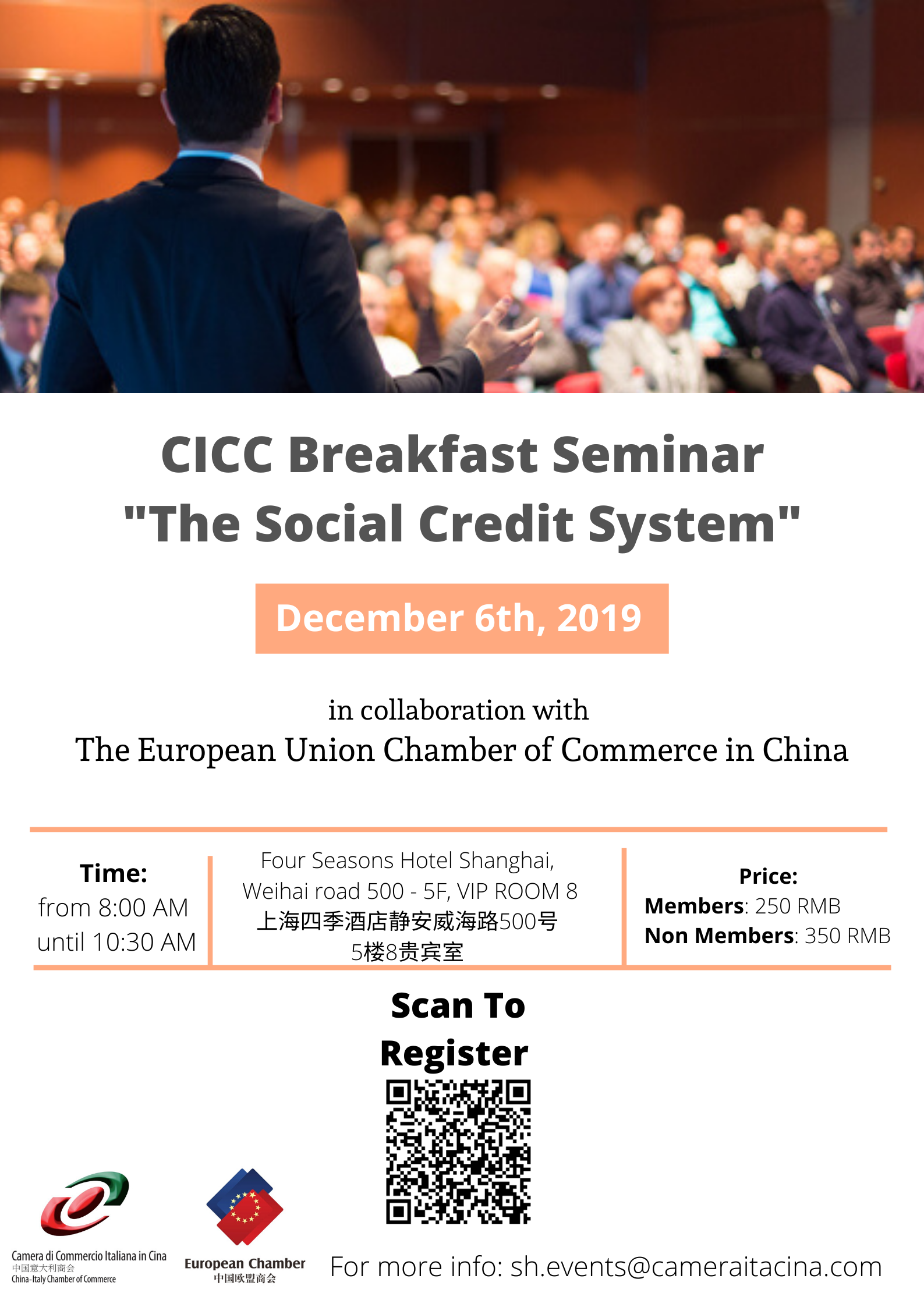 The China-Italy Chamber of Commerce (CICC), in cooperation with the European Union Chamber of Commerce in China (EUCCC), is glad to invite you to the breakfast Seminar on 6th of December, focused on