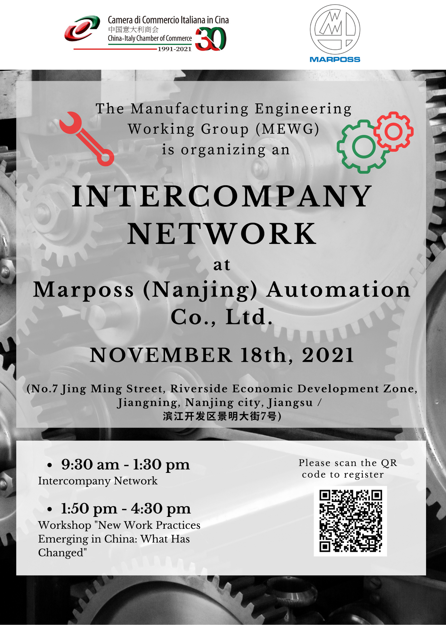 The Manufacturing Engineering Working Group (MEWG) of the China-Italy Chamber of Commerce (CICC) is organizing the third session of our Intercompany Network.