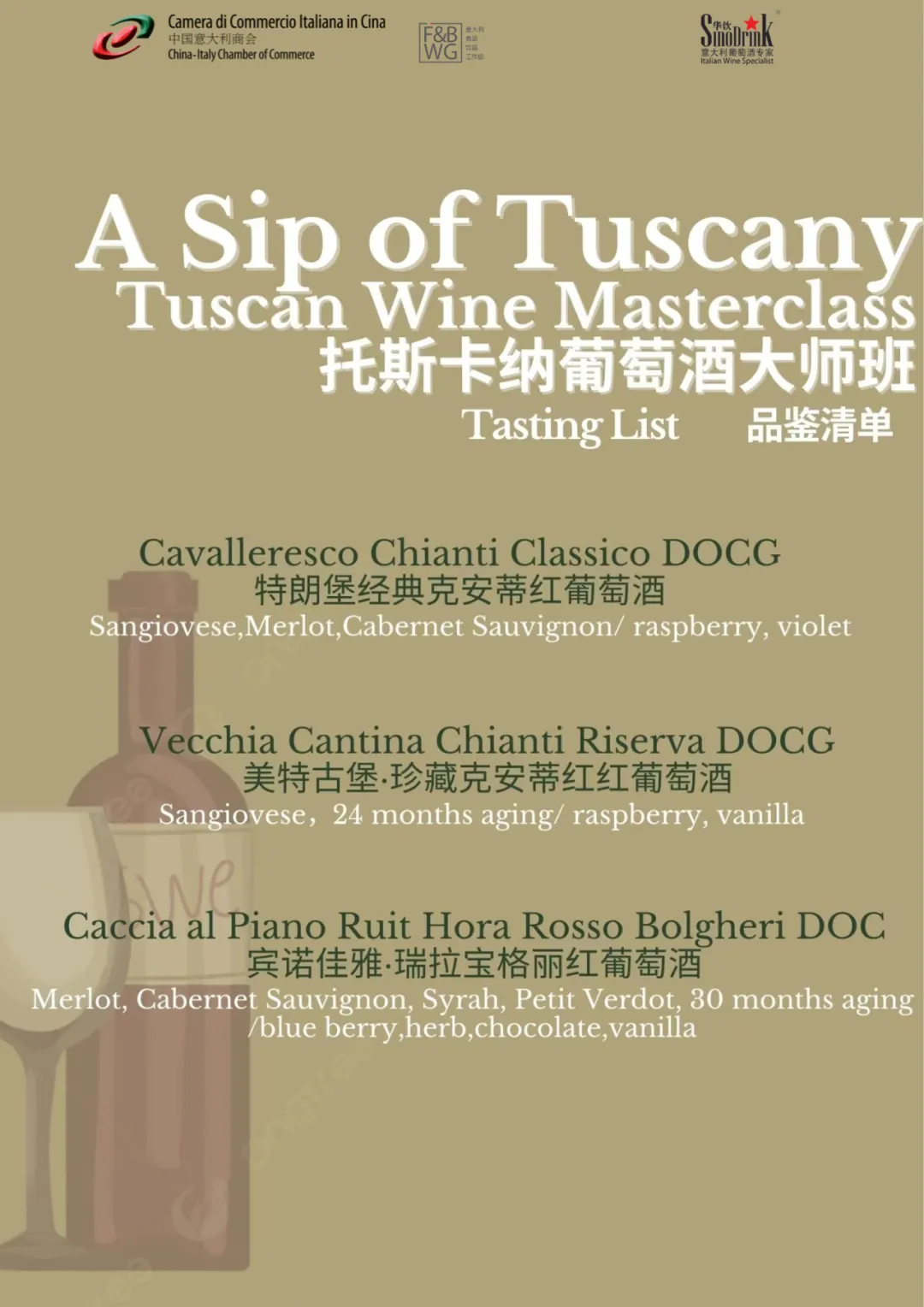 The China-Italy Chamber of Commerce (CICC) is glad to invite you to the A Sip of Tuscany: Tuscan Wine Masterclass in Chengdu on June 20th, this event is held by CICC in collaboration with our member SinoDrink and it will be held at Girasole Italian Restaurant.