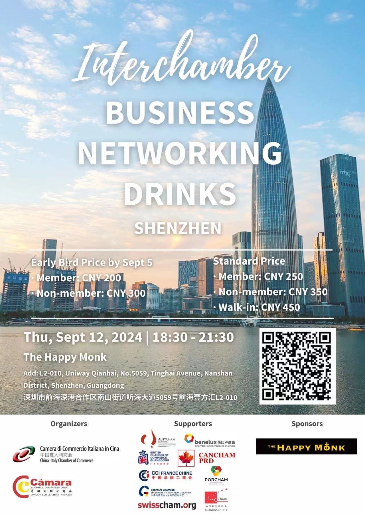 The China-Italy Chamber of Commerce (CICC) is glad to invite you to Interchamber Networking Drinks which will be held at Happy Monk, Shenzhen on Thursday, Sep 12th, from 18:30 - 21:30