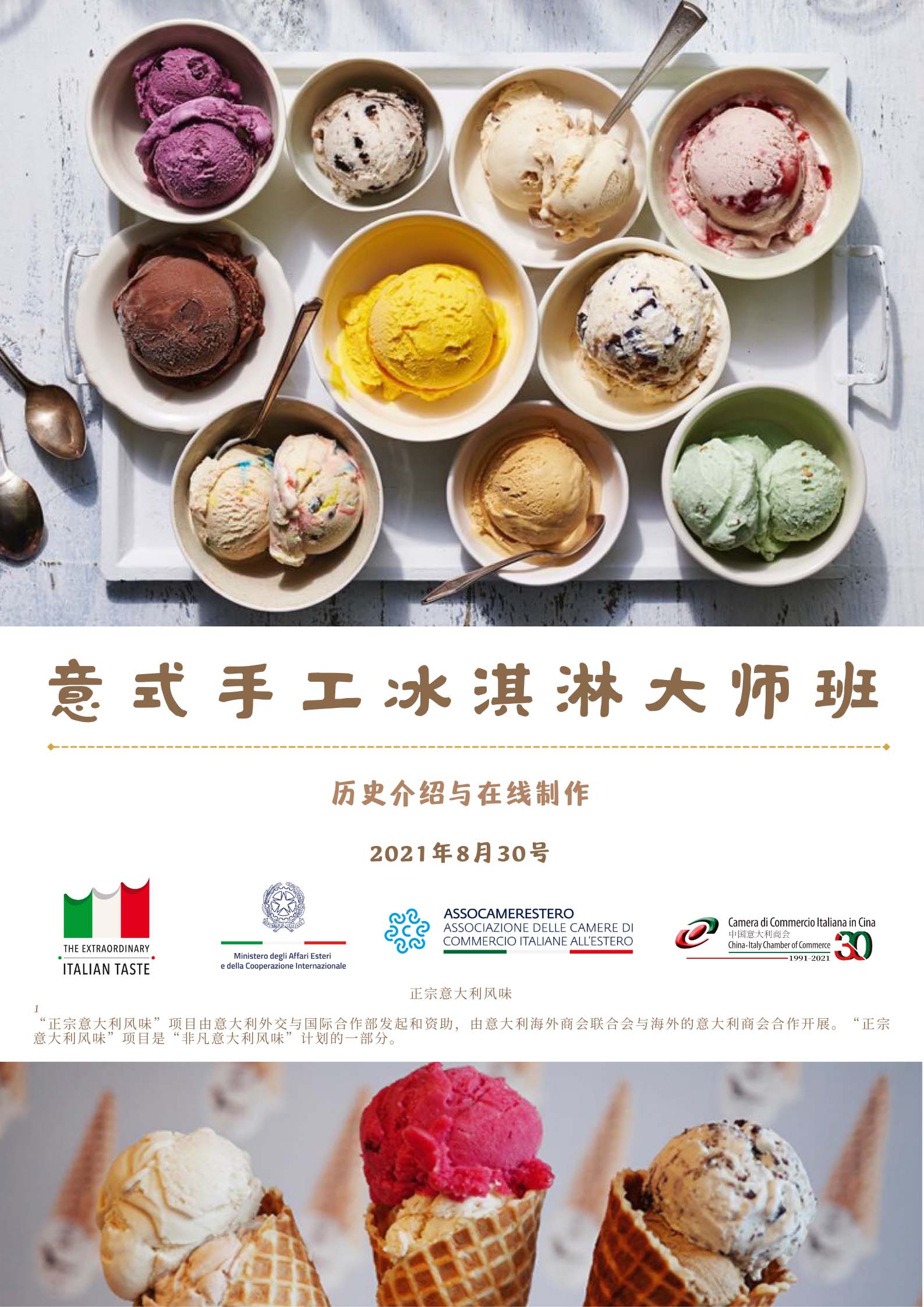 亲爱的会员和朋友们: 中国意大利商会很高兴宣布我们将于2021年8月30日在以线上的方式举行“意式冰激淋”大师班-历史介绍及在线制作活动。