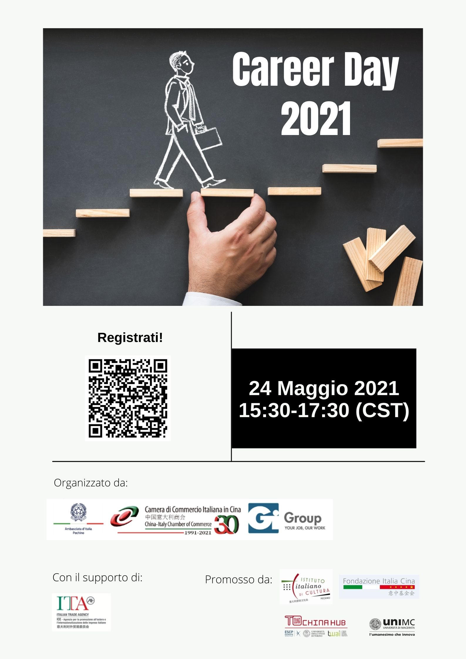 中国意大利商会联合意大利驻华大使馆和杰艾集团将于2021年05月24日组织第八届职业发展日。