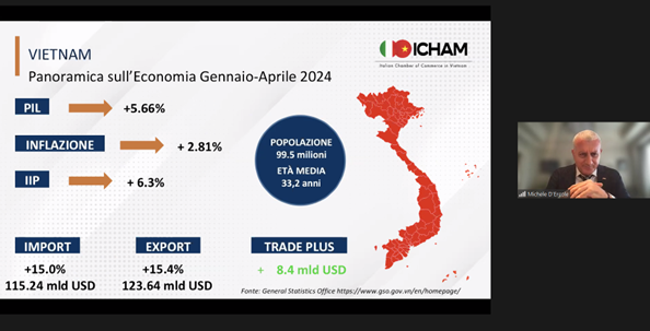 La Camera di Commercio Italiana in Cina, in collaborazione con Confindustria, Deloitte e Assocamerestero, nello specifico la rete delle Camere di Commercio Italiane dell’area Asia, Sud Africa e Oceania, ha organizzato il seminario online "Le Prospettive per le Imprese Italiane in Vietnam" tenutosi il 14 maggio 2024.