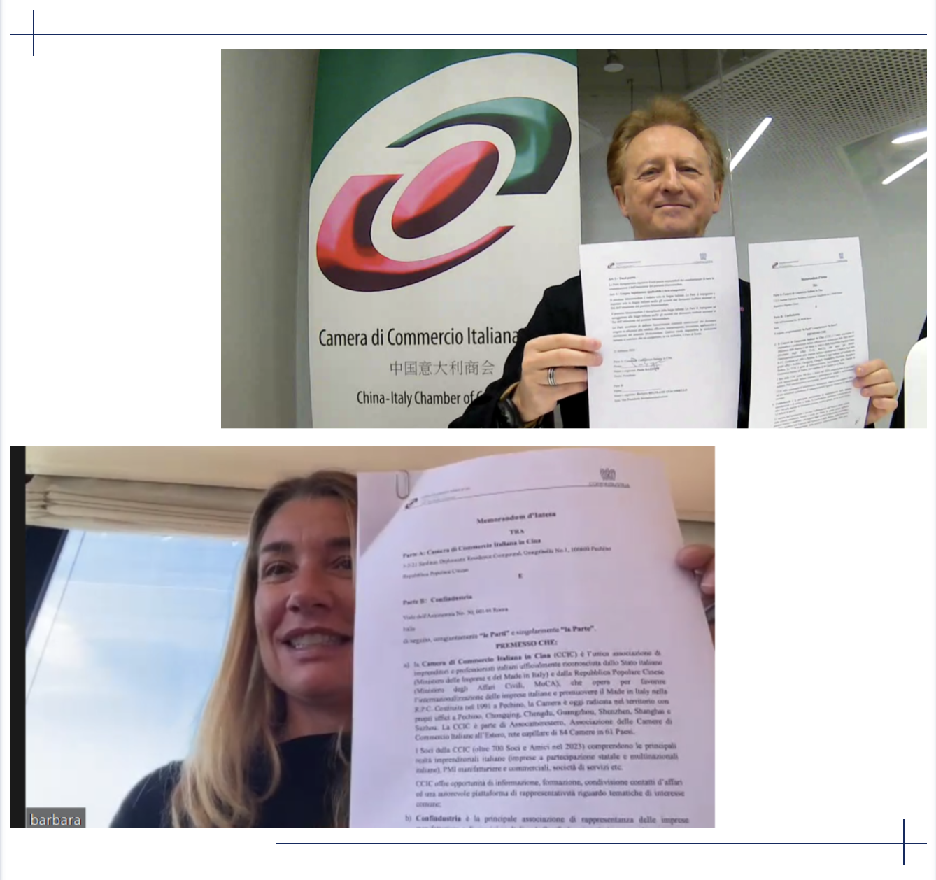 Oggi, 21 febbraio 2024, il Presidente della Camera di Commercio Italiana in Cina (CCIC), Paolo Bazzoni, e la Vice Presidente di Confindustria per l’Internazionalizzazione, Barbara Beltrame Giacomello, hanno rinnovato il Memorandum d’Intesa tra le due associazioni, il quale pone solide basi per il prosieguo della collaborazione tra la CCIC e Confindustria a sostegno e beneficio delle rispettive reti di imprese sia in Italia che in Cina.