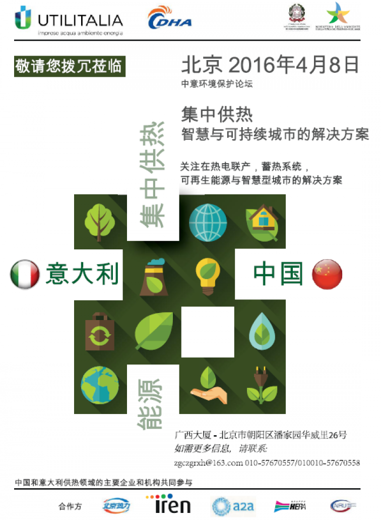 On the 8th AprilUtilitalia and China District Heating Association will organize the Forum “District Heating: solutions towards smart cities and sustainable cities”.