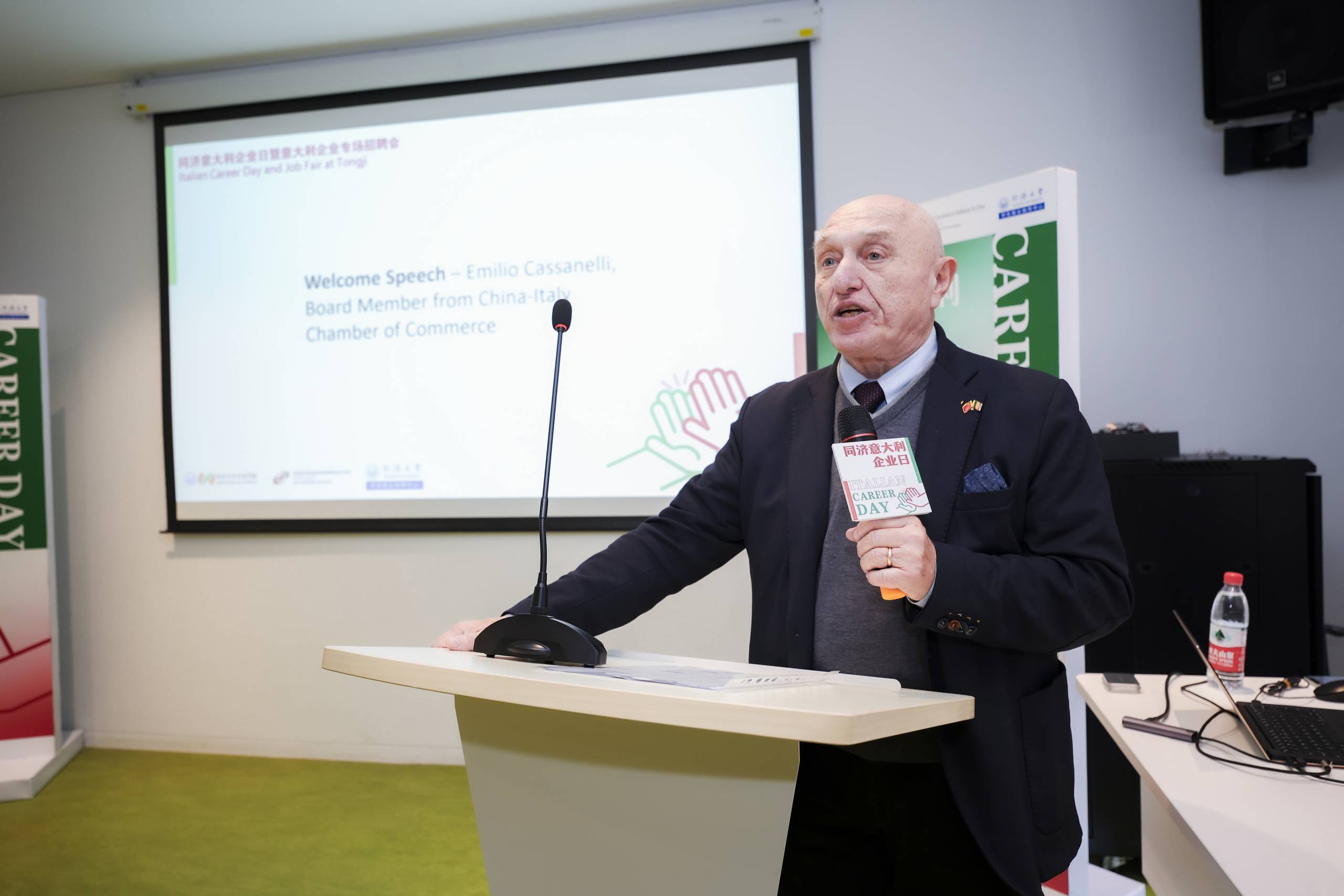 The event opened with a welcome speech held by Mr. Lei Xinghui, Vice President of Tongji University and Dean of Sino-Italian College, and Mr. Emilio Cassanelli, Board Member from China-Italy Chamber of Commerce.