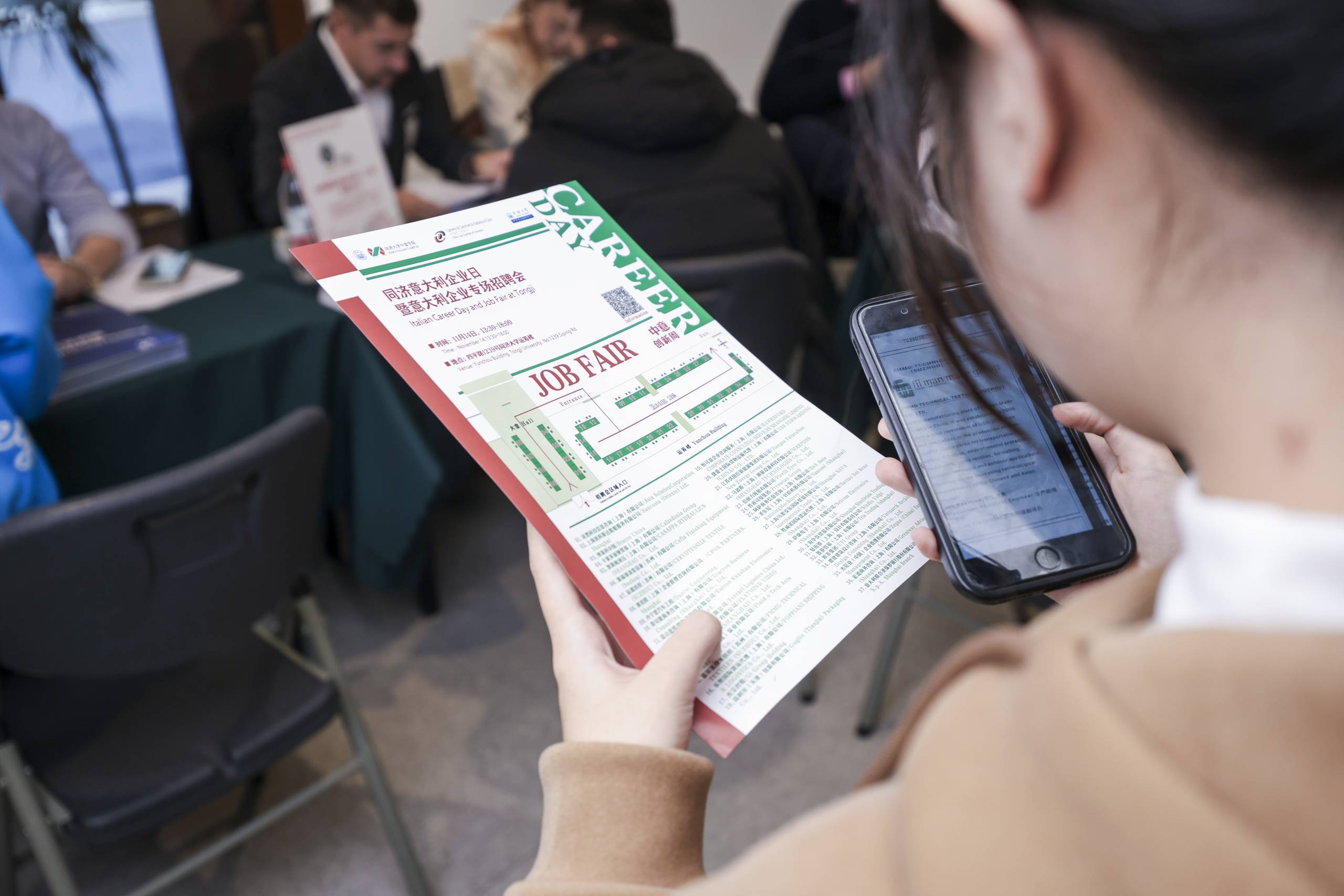 The job fair was preceded by a career day seminar in the presence of Prof. Lei Xinghui, Vice President of Tongji University and Dean of the Sino-Italian Campus, and Prof. Qu Chen, Deputy Director of the Foreign Affairs Office of Tongji University. The Commercial Consul Alessandra Palumbo also paid a visit during the job fair.