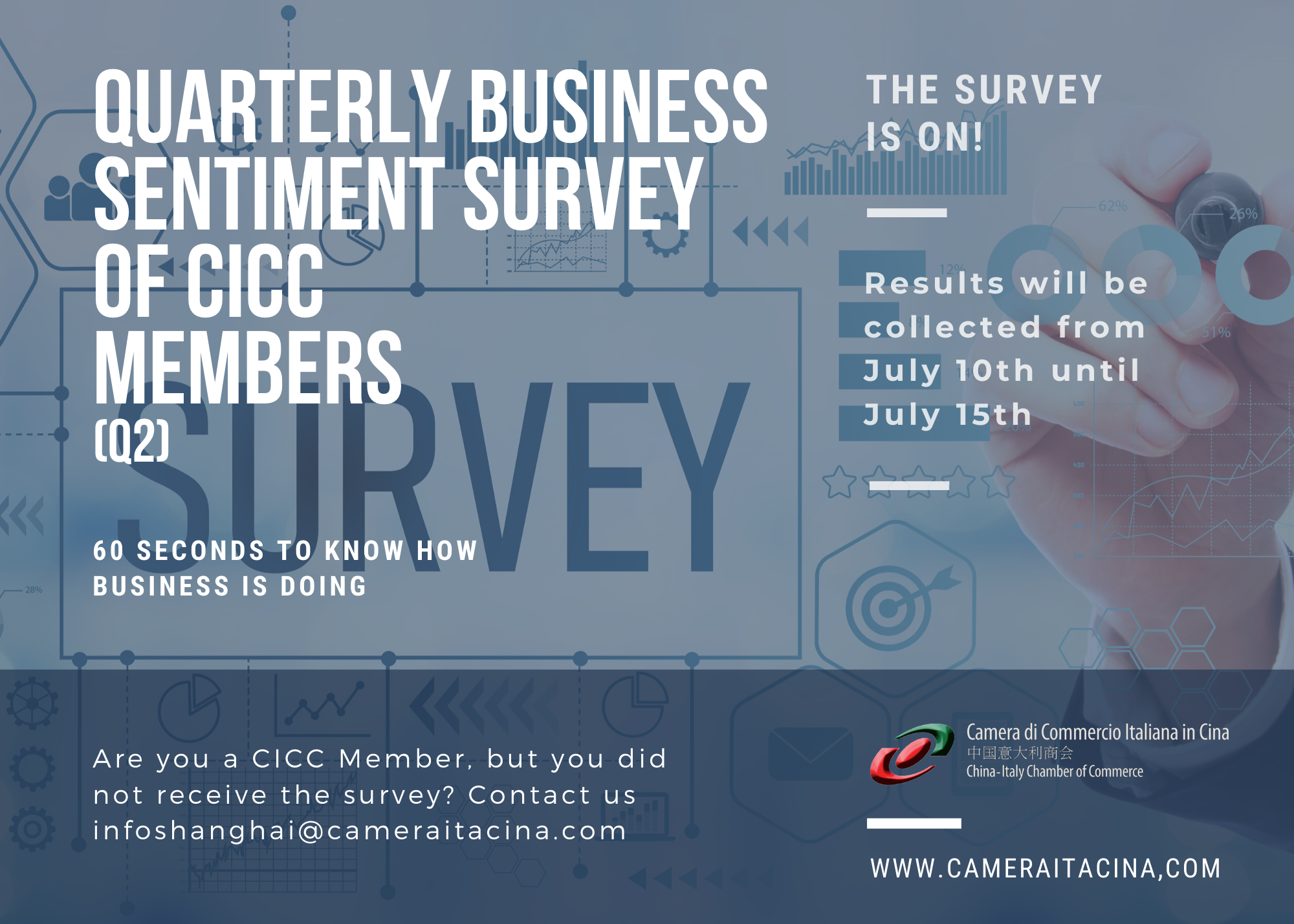 如果您是中国意大利商会会员但是没有收到问卷调查,请发送邮件联系我们: infoshanghai@cameraitacina.com。