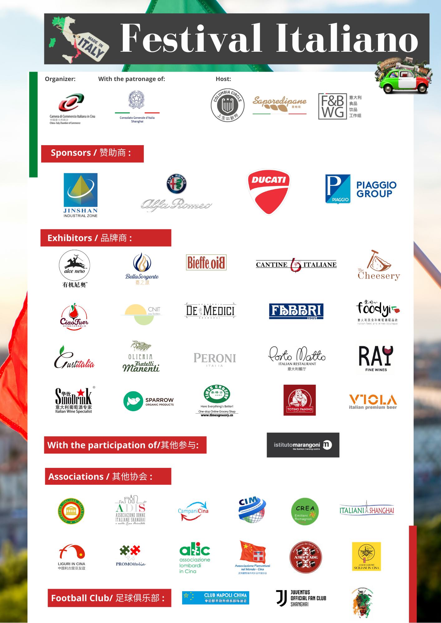 特别感谢主要赞助商:金山工业园区、Alfa Romeo、Ducati和Piaggio Group