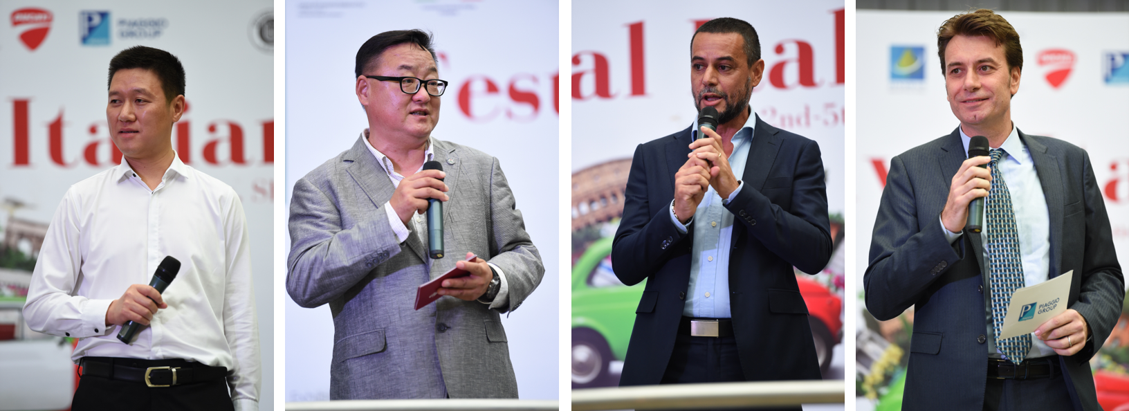 Fabrizio Cazzoli(Ducati China的总经理)和Massimiliano Guelfo(Piaggio Group China的总监)登上舞台,介绍他们的公司,在中国的优质意大利汽车标志。本次活动展出了Ducati摩托车、Vespa踏板车和Guzzi摩托车。