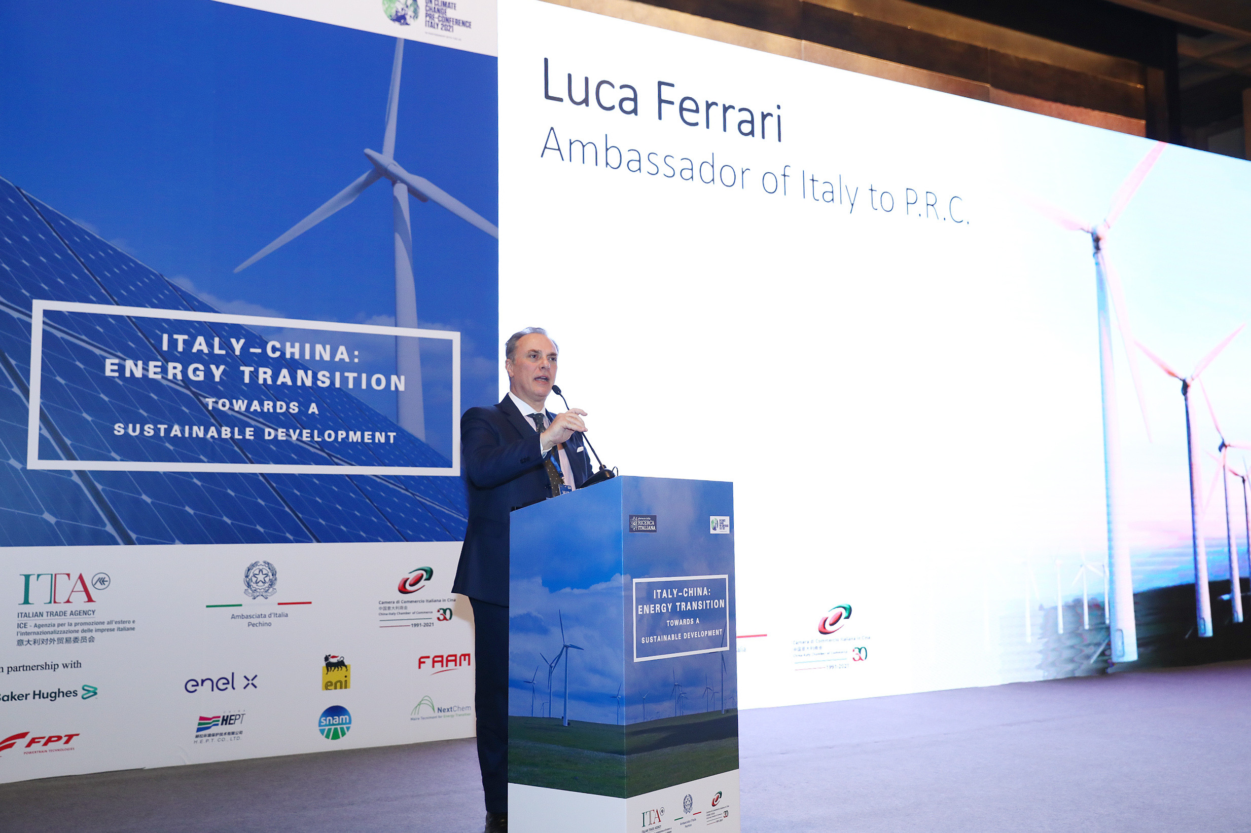 2021年04月16日星期五,中国意大利商会与意大利驻华大使馆和意大利对外贸易委员会共同组织了名为“意大利-中国:能源转型-迈向可持续发展”会议。