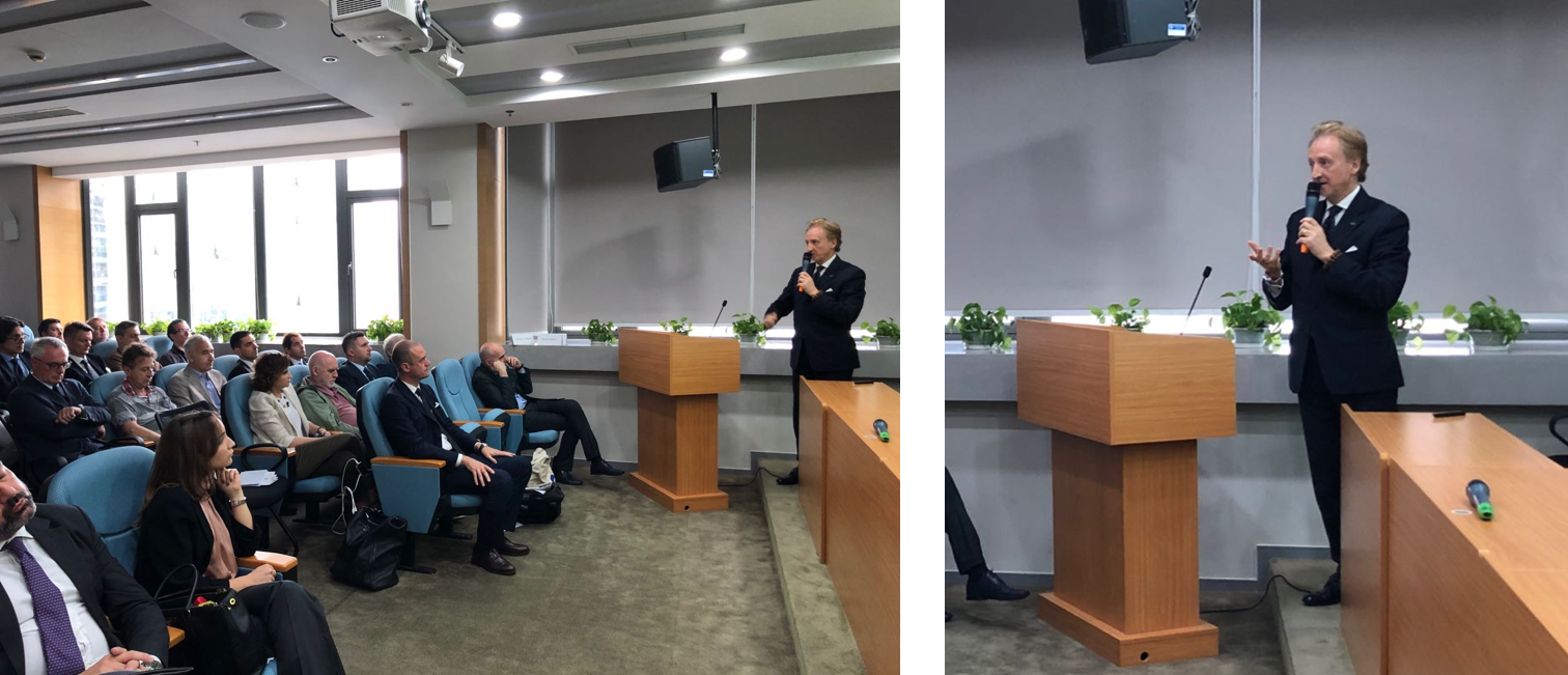中国意大利商会上海副会长瓦尔特罗·卡内帕就中国国际进口博览会以及开展两次洽谈会(即中国经理人和年轻人的洽谈会)的项目发表了讲话。