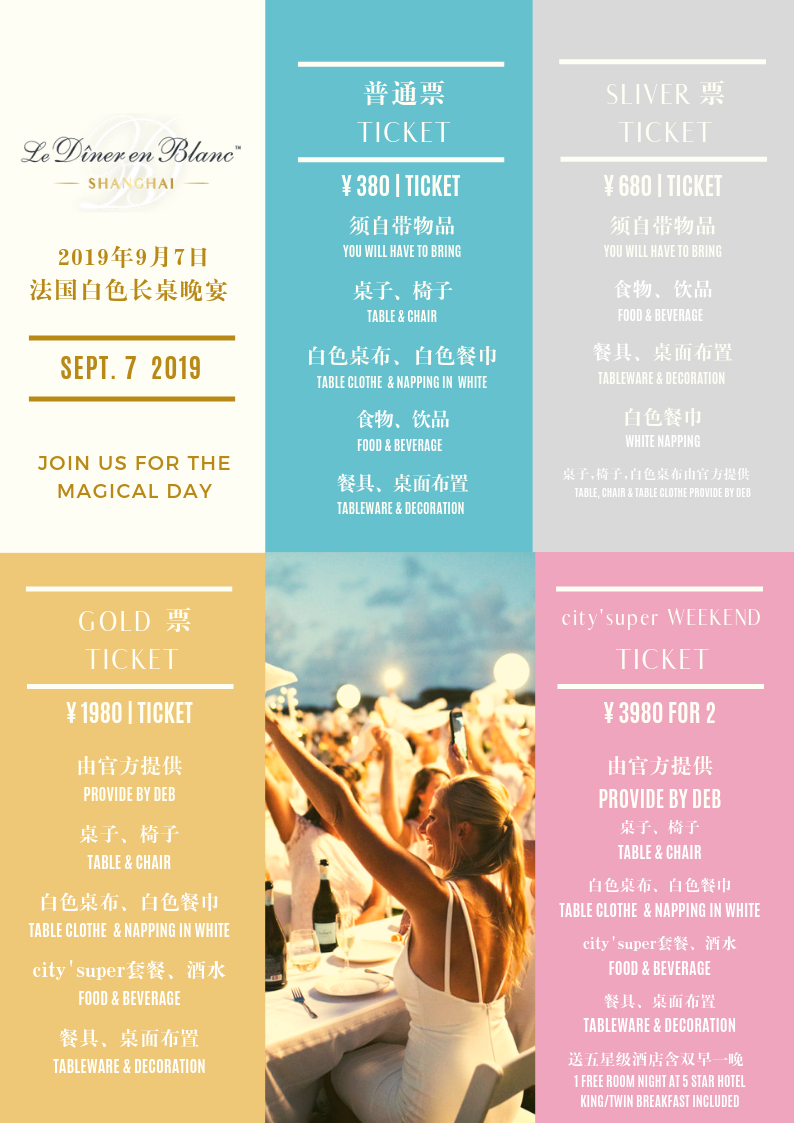 This year, Le Dîner en Blanc Shanghai will be a year of "Game Changer", and the after party will be hosted at the same venue. If you want to enjoy the night until the end, they've prepared a "Sleep Over Package", which includes one-night accommodation in a 5-star hotel and a selection of awesome activities during the next day. Don't miss it!