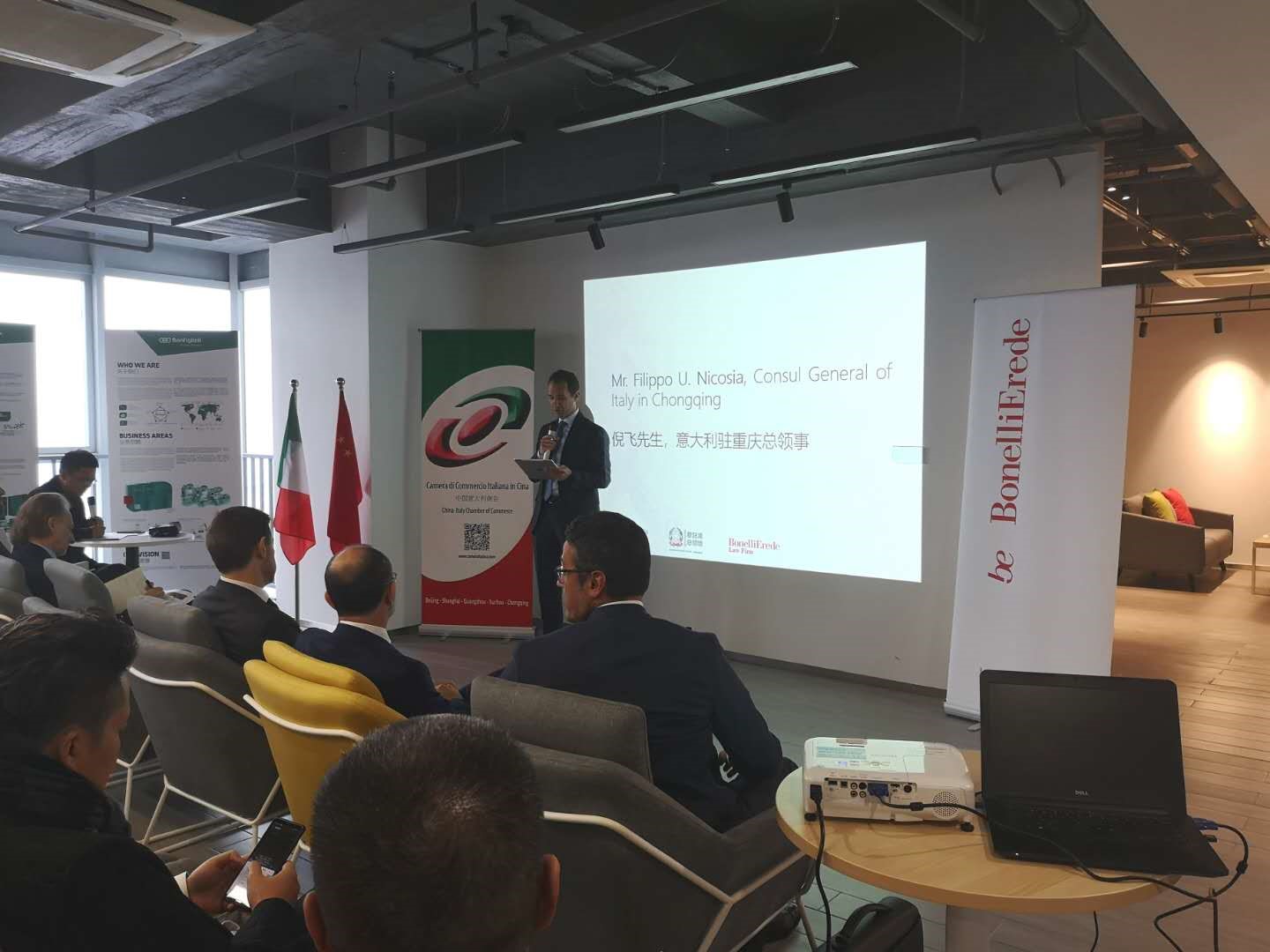 意大利法律和税务服务领域的领导者,活跃于商法和商业刑法等所有领域的BonelliErede律师事务所,在中国意大利商会与意大利驻渝总领馆的支持下,于1月21日在中国意大利商会重庆办公室成功举办了以“协助在意大利、非洲和中东的中国企业:我们的实践经验”为主题的研讨与意式鸡尾酒会。