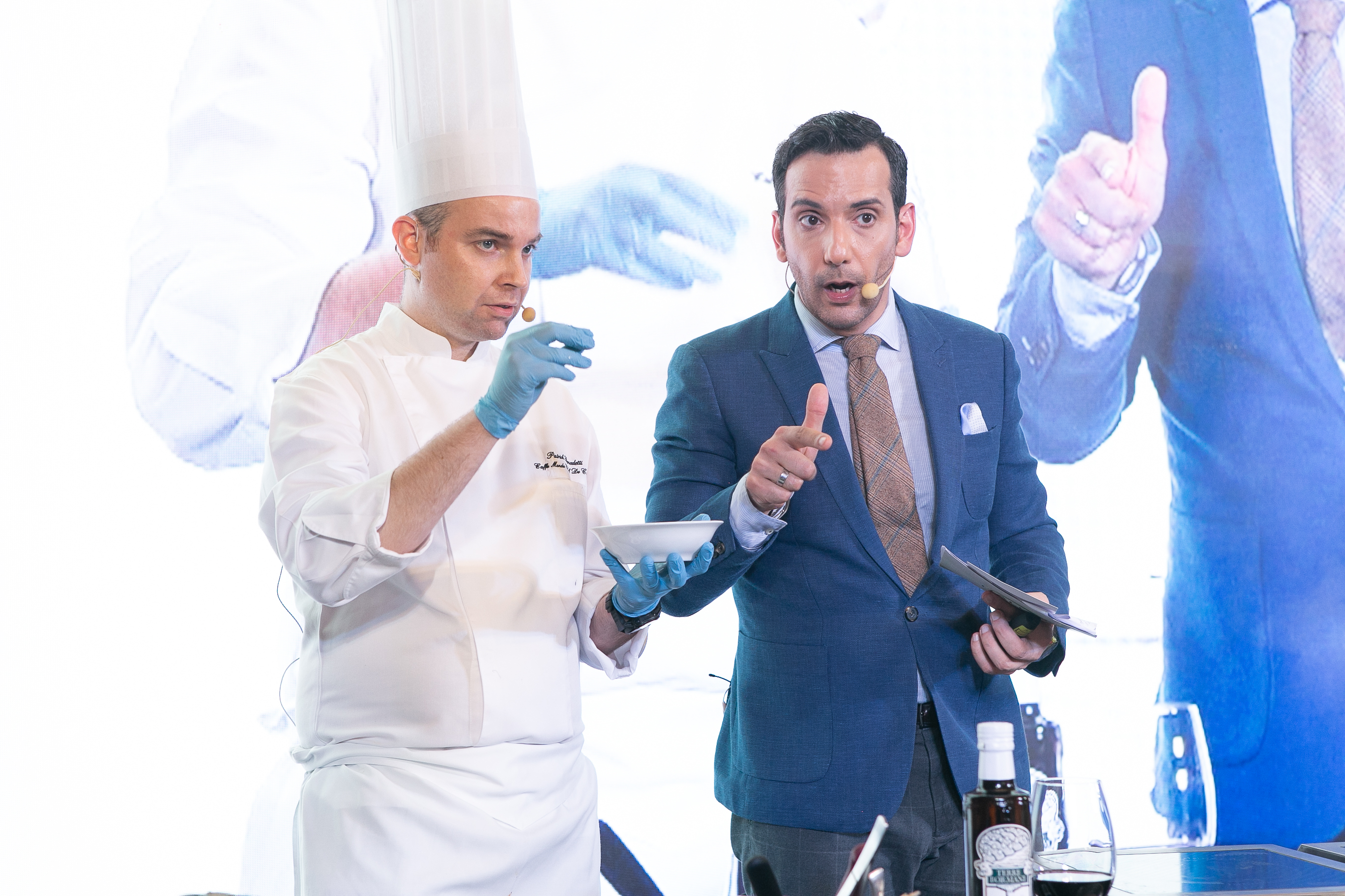 The audience was served by an classic Italian menu composed by four courses, performed by Chef Patrick Benedetti, Caffe Mondo Chef de Cuisine of Four Seasons Hotel Guangzhou, and Chef Mauro Zanusso, Executive Chef of St. Regis Hotel Shenzhen. The two chefs created dishes in both traditional and modern way, letting the public have a further knowledge of the Italian ingredients and their evolution. The guests not only tasted the dishes, but also how an Italian menu is served. For the Antipasto, Pasta and Dessert, we invited the sommelier to explain the wine pairing to the audience.