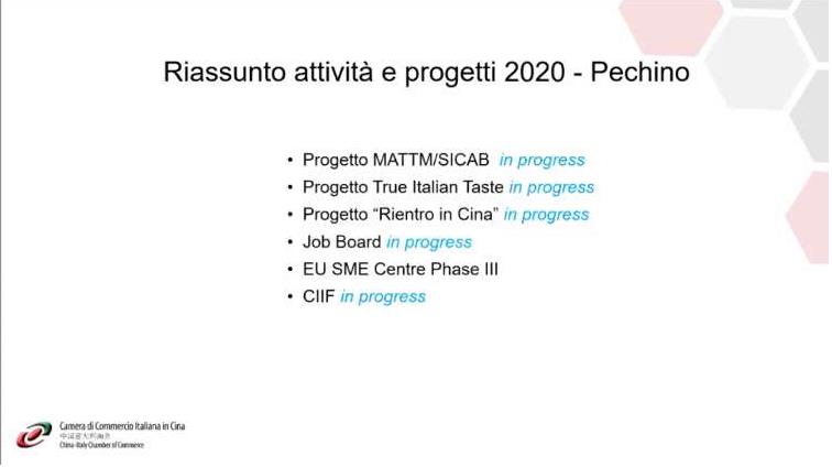 随后,中国意大利商会秘书长朱莉娅介绍了中国意大利商会的活动和项目,尤其是在华意大利企业的复工项目以及计划于2020年进行的其他项目。