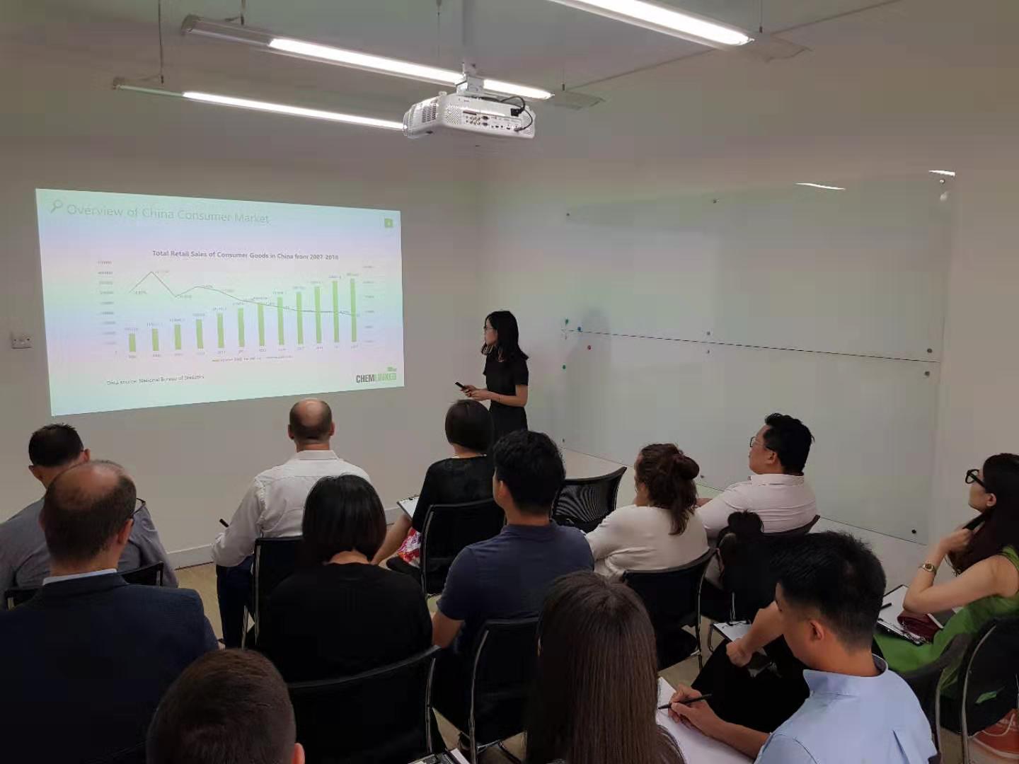 Chris Wang女士,高级研究分析员兼REACH24H咨询集团ChemLinked平台的运营经理,在简要概述中国消费者市场的情况后,介绍了中国消费者的情况,强调了年龄、性别和社会阶层如何改变消费结果。