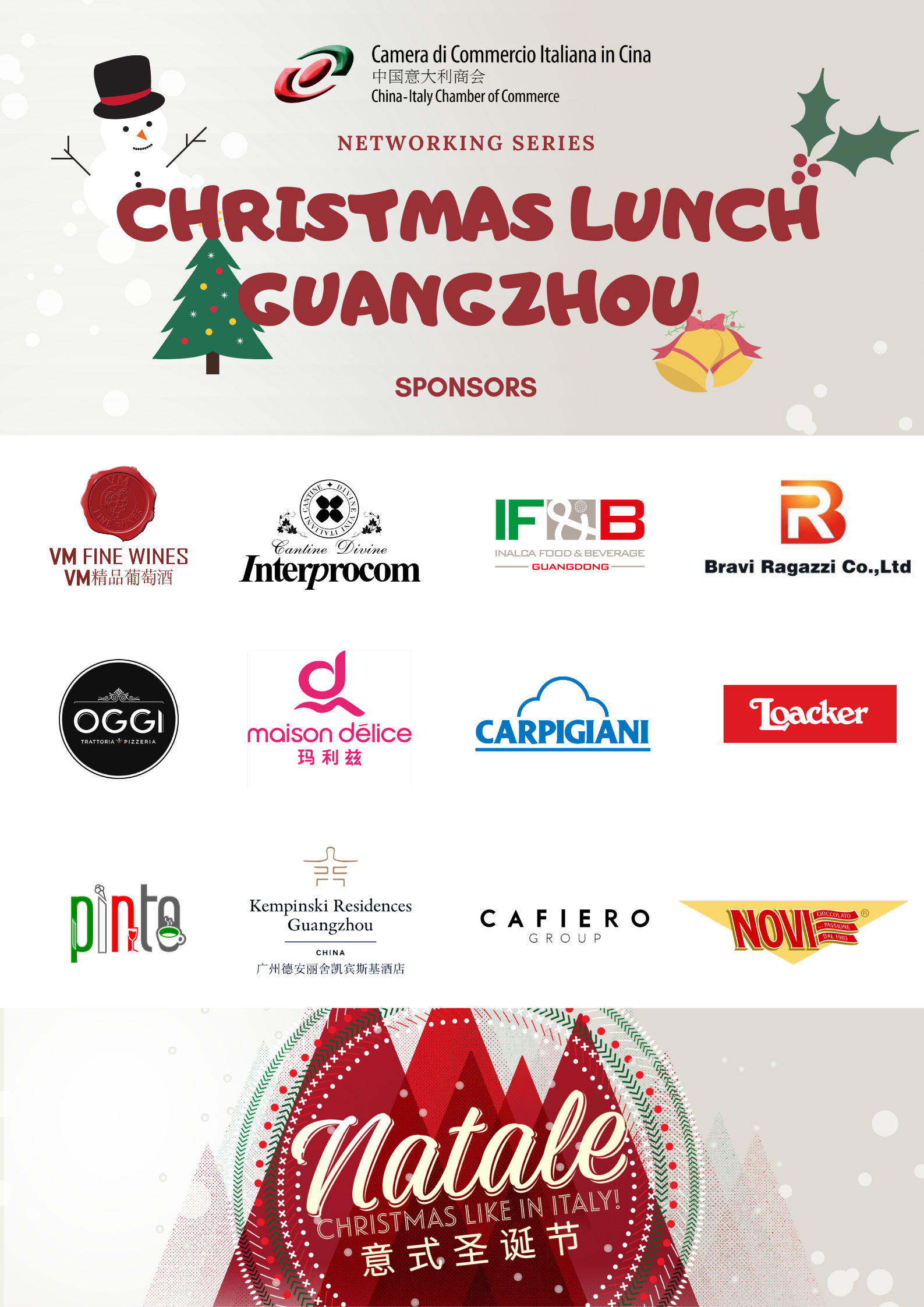 The China-Italy Chamber of Commerce (CICC) is glad to inform you that the Christmas Lunch in Guangzhou was held on December 20, 2020 at OGGI Restaurant. With more than 60 participants attending, the event offered a unique opportunity for the guests to exchange business contacts and to express their best wishes with family and friends.
