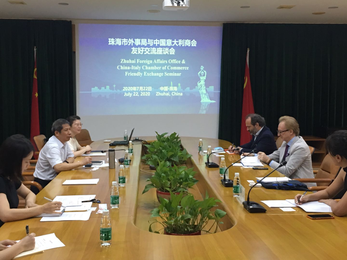 7月22日早上,商会会长保罗•巴颂尼先生和董事拉斐尔•库柏先生与珠海市政府及珠海外事办进行了正式会谈。