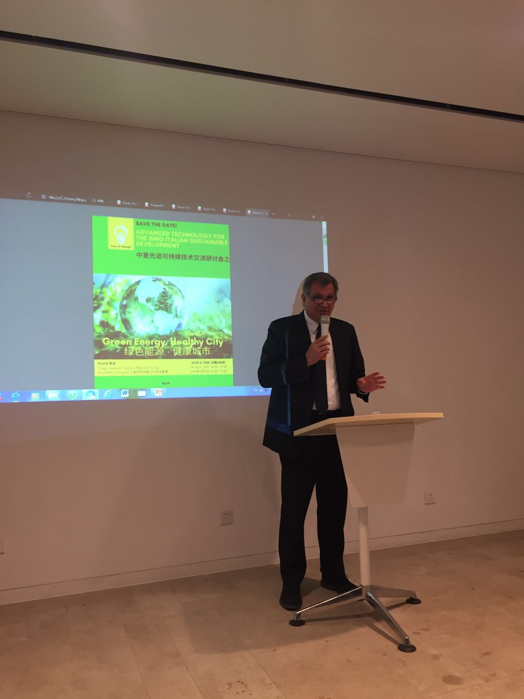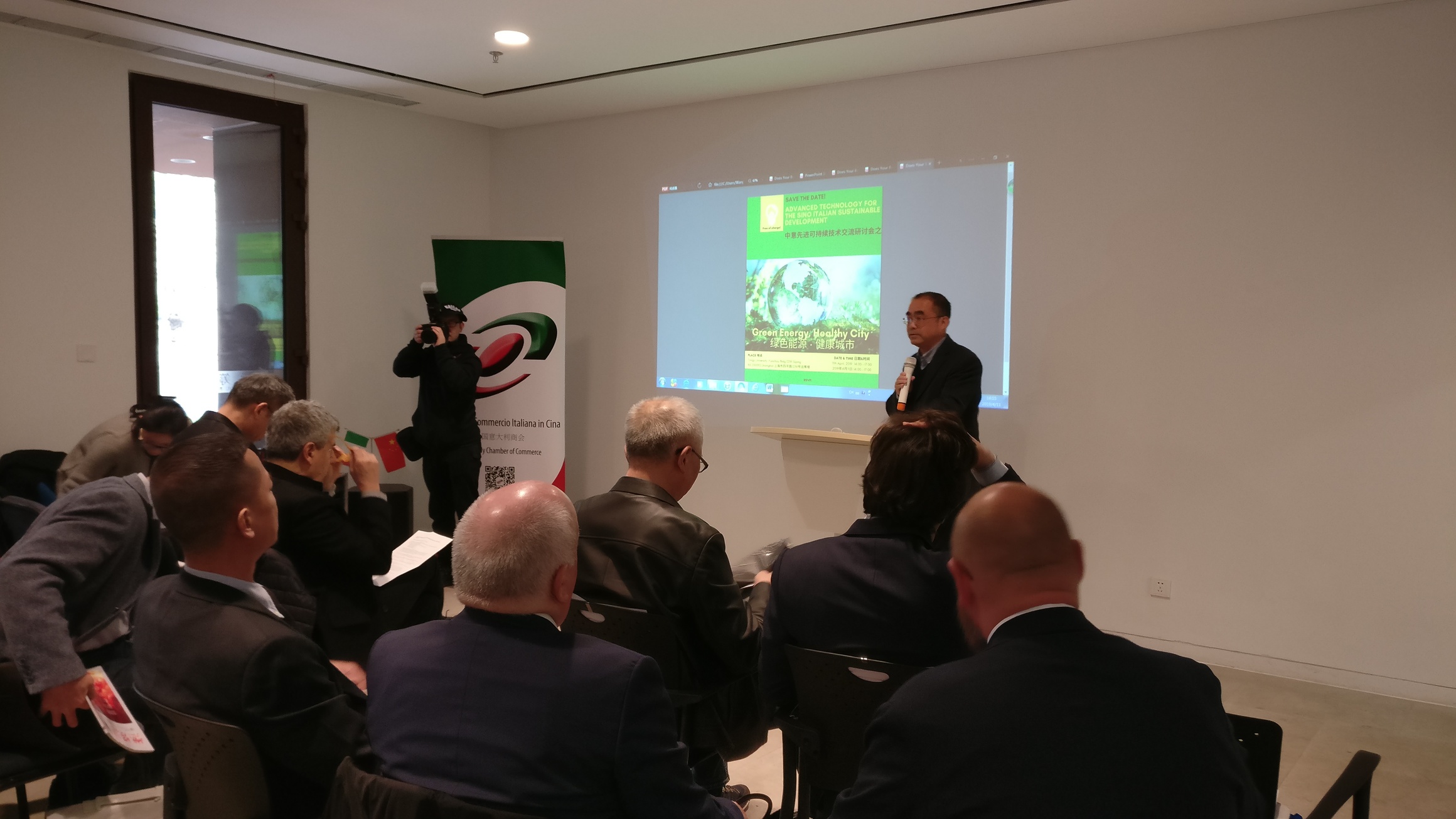 After the introductory phase of the Seminar, Mr. Wei Yujian, Vice Director of Shanghai Energy Efficiency Centre, highlighted the attempt made by the city of Shanghai to fight climate change. His speech was followed by a speech given by Mr. Antonio Farese, Board Member of the China-Italy Chamber of Commerce who explained the CICC's role in helping Italian firms settle and expand in the Chinese market. He further highlighted how the CICC is helping with environmental protection in China.