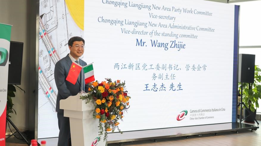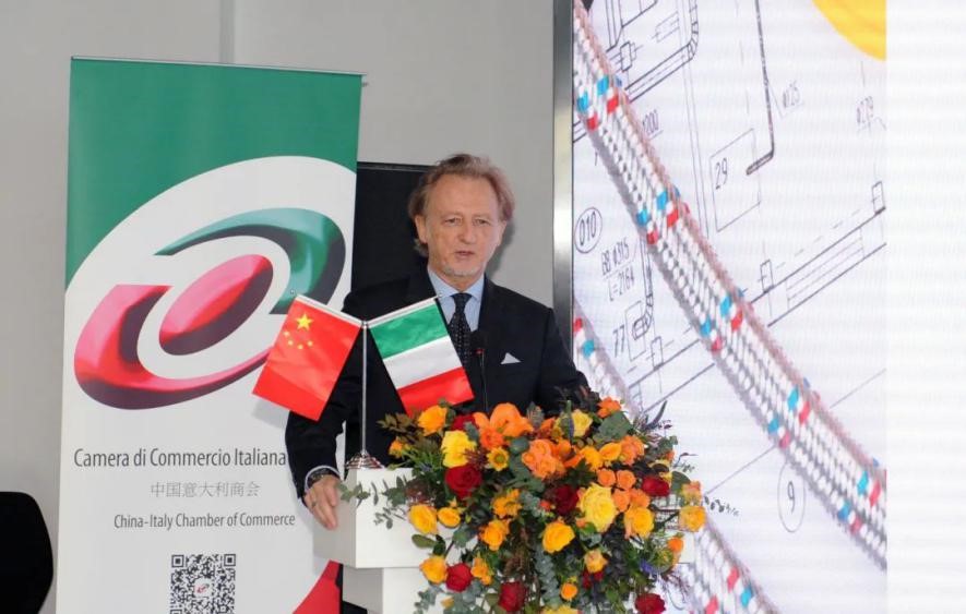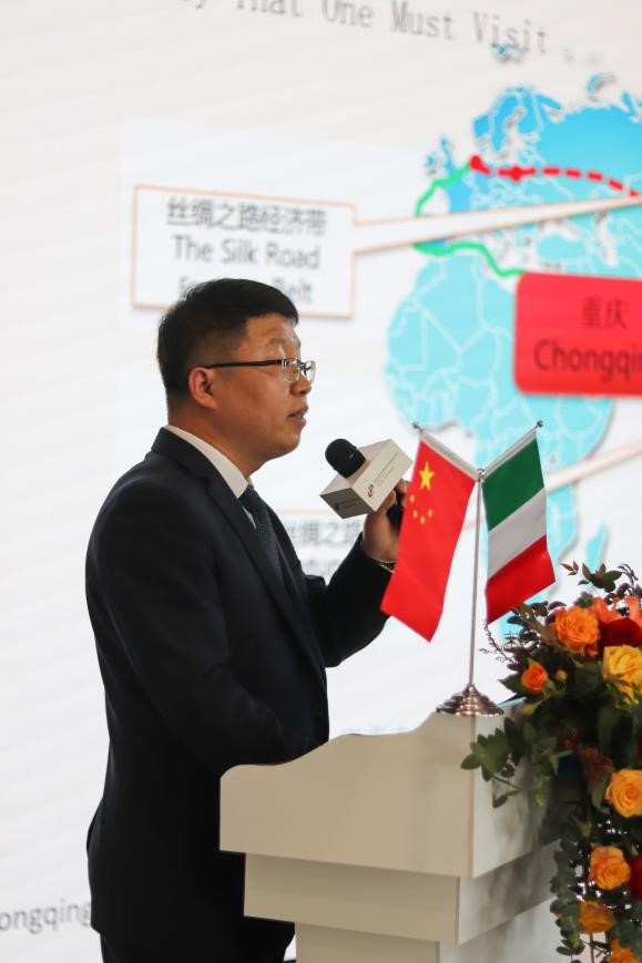 下午意大利驻华大使方澜意,重庆两江新区党工委副书记、管委会常务副主任王志杰,中国意大利商会会长保罗·巴颂尼出席了“第一届意大利机械工程路演重庆站”的会晤活动并致辞。