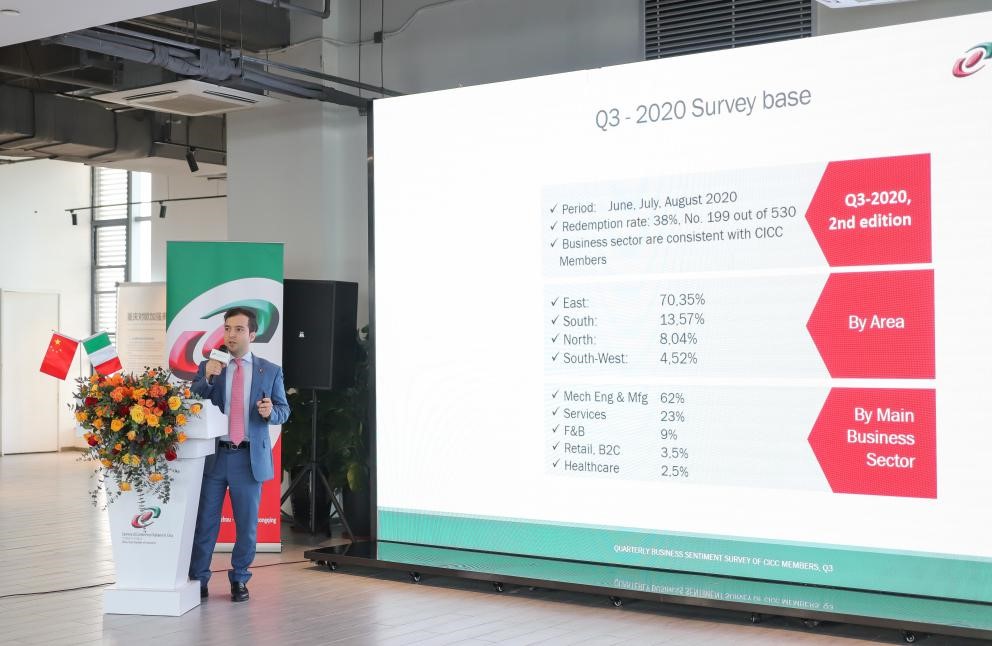 活动中,中国意大利商会董事、重庆地区代表张卢卡带来《2020年第三季度中国意大利商会会员企业季度商情调查分析》,介绍了中国意大利商会会员企业在中国的具体布局、业务领域等变化趋势。