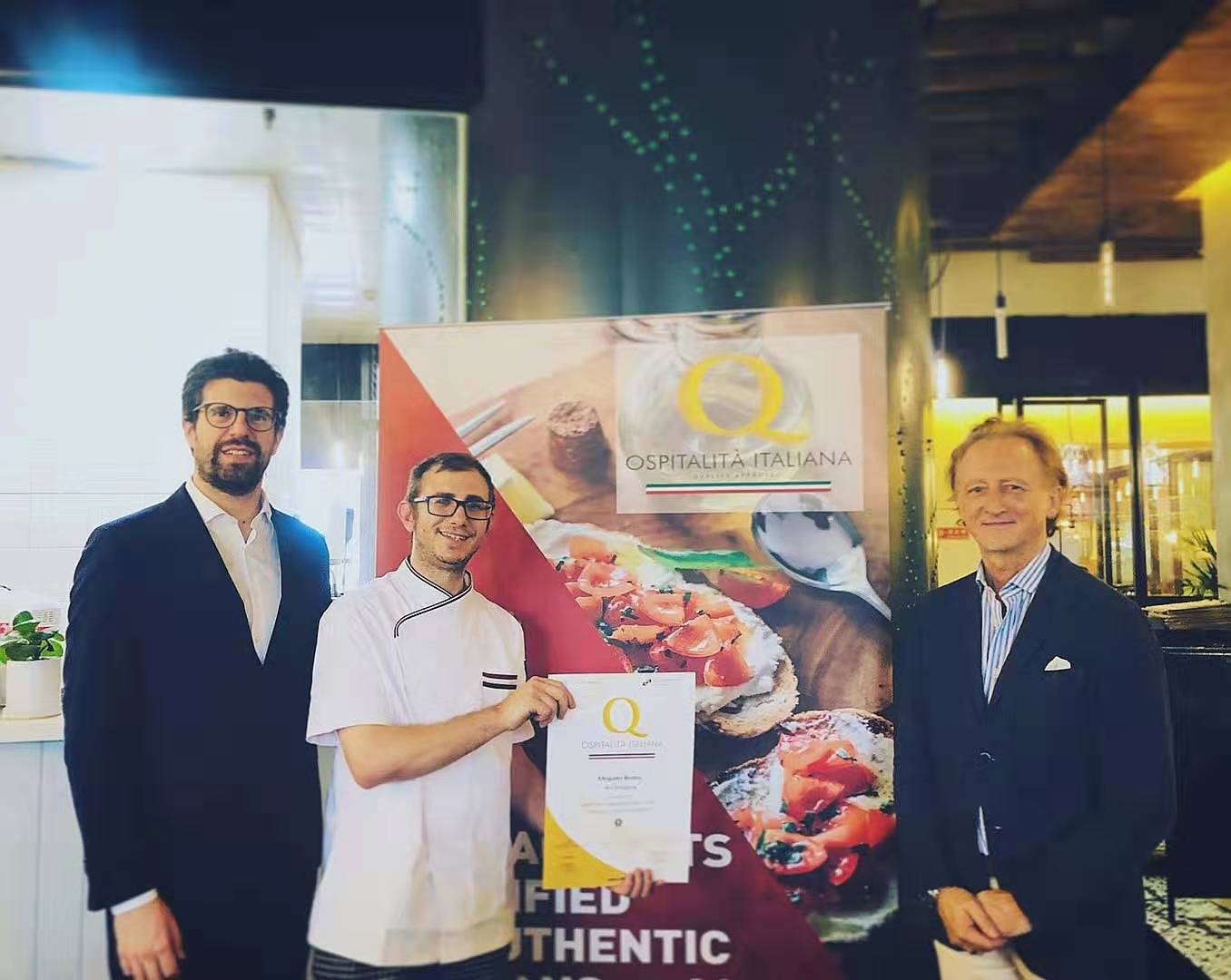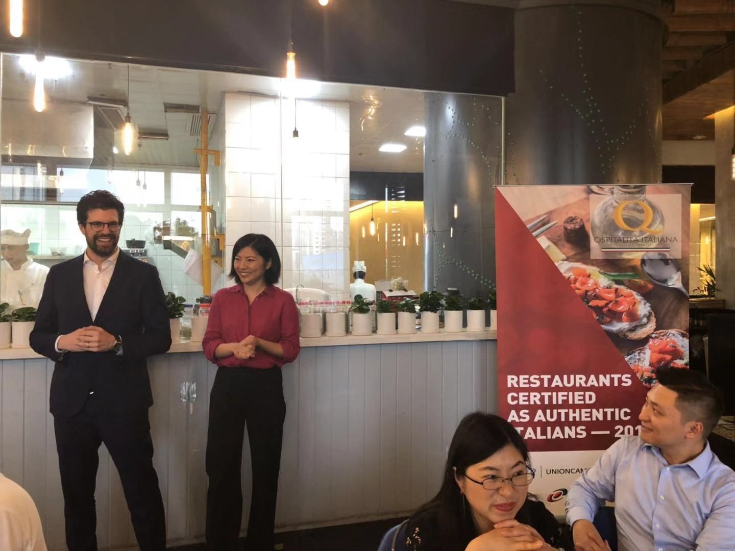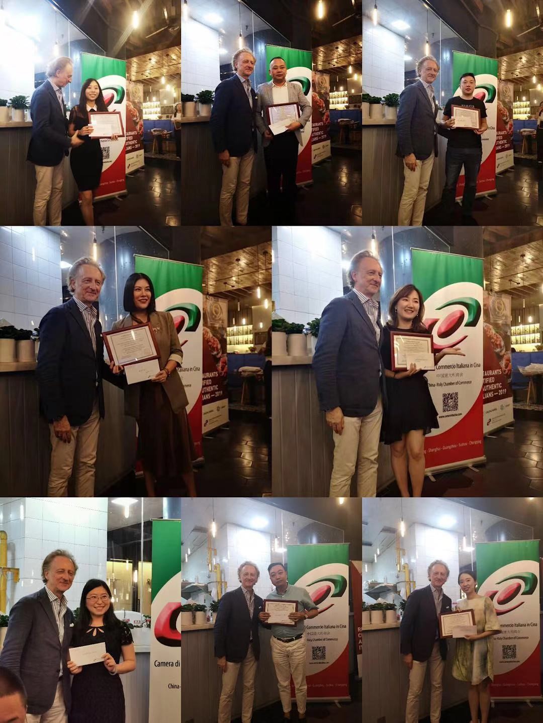 之后,康达城先生和保罗 巴颂尼先生为重庆和成都获得认证的意大利餐厅颁发证书: