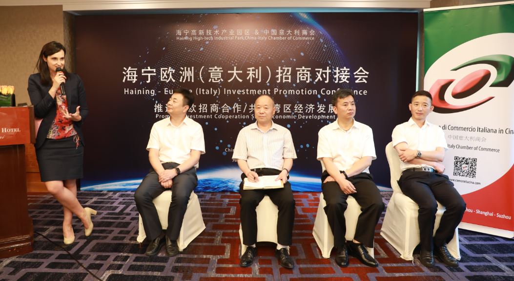 The event finished off smoothly with an animated Q&A Session moderated by Ms. Emanuela Vizzarro, Shanghai and Suzhou Office Manager and attended by: Mr. Hong Ming, Deputy Director of Haining Municipal Development and Reform Bureau, Mr. Yao Zhiming, Deputy Director of Haining Municipal Bureau of Commerce, Mr. Cai Yongzheng, Deputy Director of Haining City Market Supervision Bureau, Mr. Zhu Xiaodong, Deputy Director of Haining High-tech Industrial Park Administrative Committee.