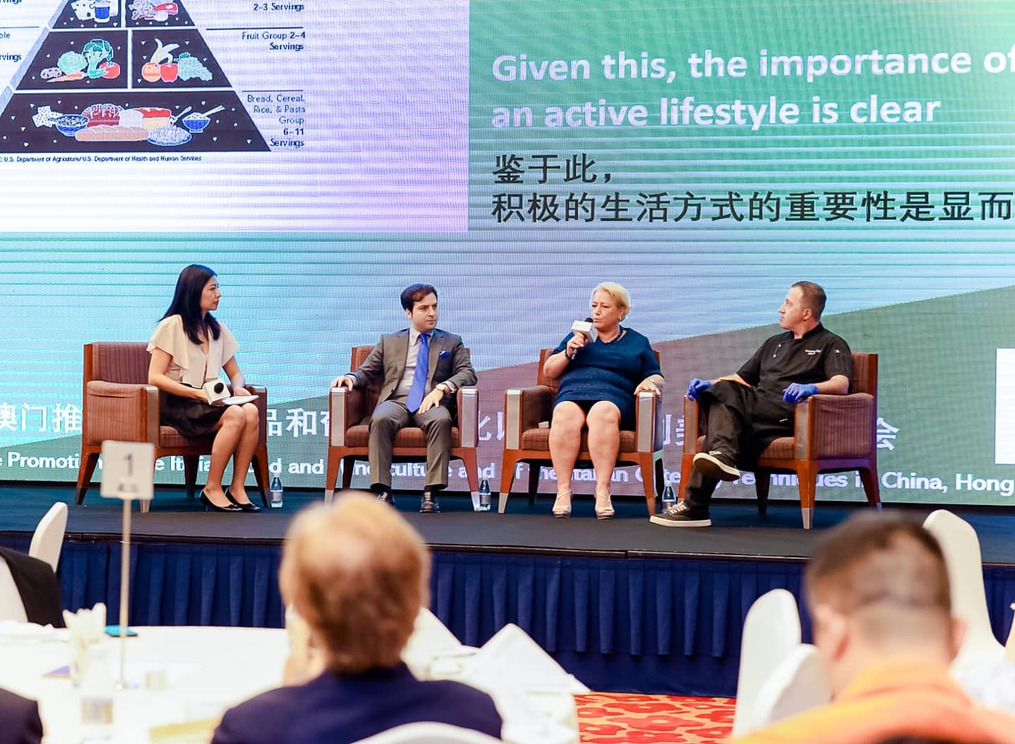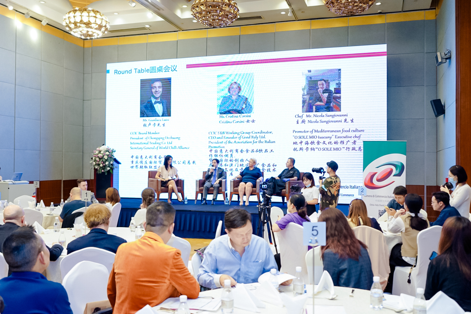 A seguire si è tenuta la tavola rotonda a cui hanno partecipato: Gianluca Luisi, Consigliere della CCIC, Cristina Corsini, Presidente dell’Associazione Promo Italia e lo Chef Nicola Sangiovanni, promotore della cultura gastronomica mediterranea. I tre ospiti hanno discusso sull'origine della dieta mediterranea, sull'importanza della pasta nella dieta italiana e sull'importanza delle denominazioni DOP e IGP, oltre a esaminare come la cucina possa rappresentare il punto di incontro fra la cultura occidentale e orientale.