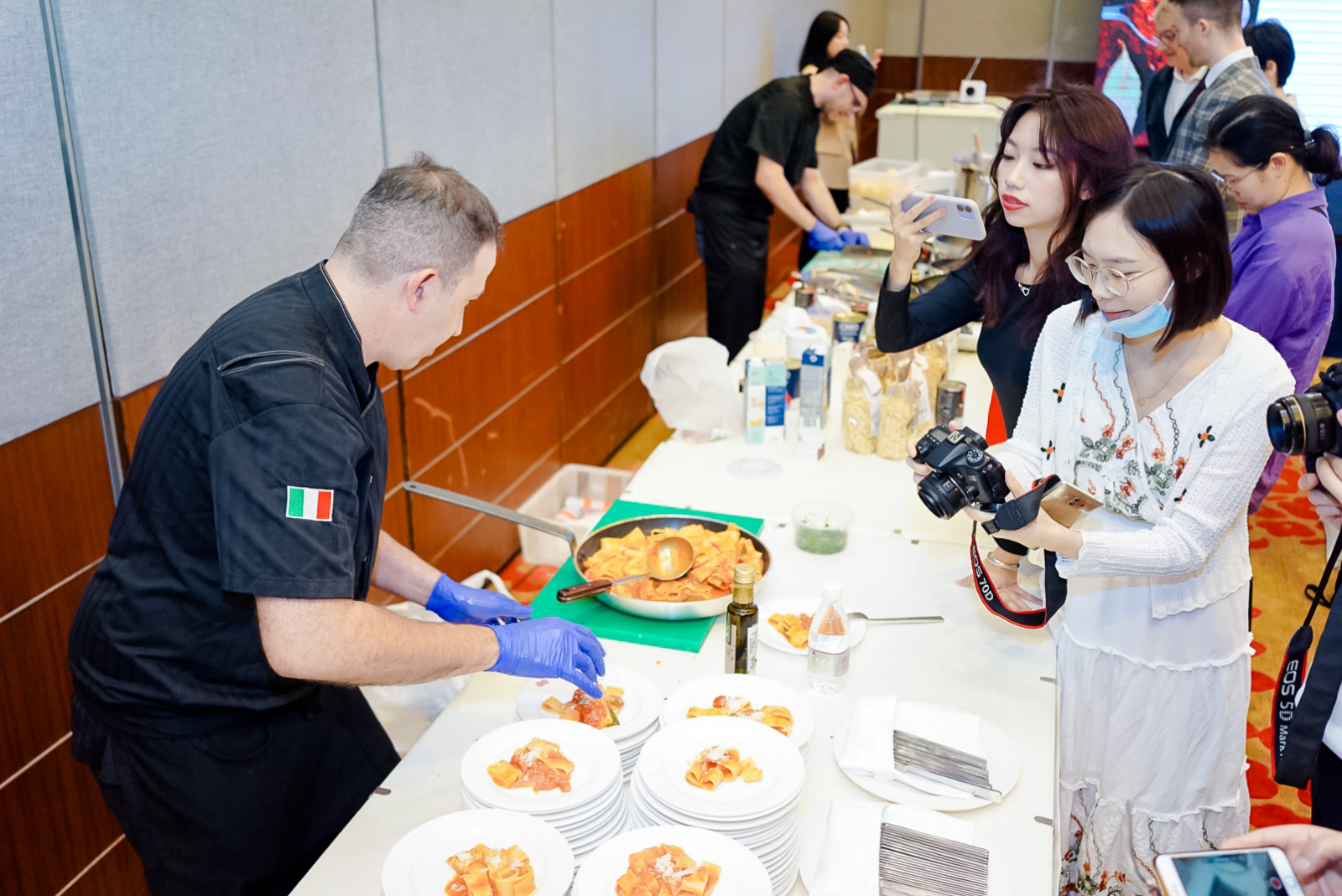 Gli ospiti hanno avuto l’opportunità di partecipare a una cooking class incentrata sulla preparazione di tre tipi di pasta, cucinata a regola d’arte da due chef italiani, Nicola Sangiovanni e  Manuel Toma. Durante la Masterclass, si è svolto anche un quiz a premi condotto da Lingling Zhao Project Coordinator della CCIC a Chongqing. Lo scopo era stimolare il pubblico cinese ad essere più curioso sulla preparazione delle ricette italiane, conoscere meglio la tradizione culinaria del Bel Paese e la qualità dei prodotti italiani in modo ludico e divertente.  Il pubblico ha partecipato con entusiasmo al quiz, creando un’atmosfera vivace.