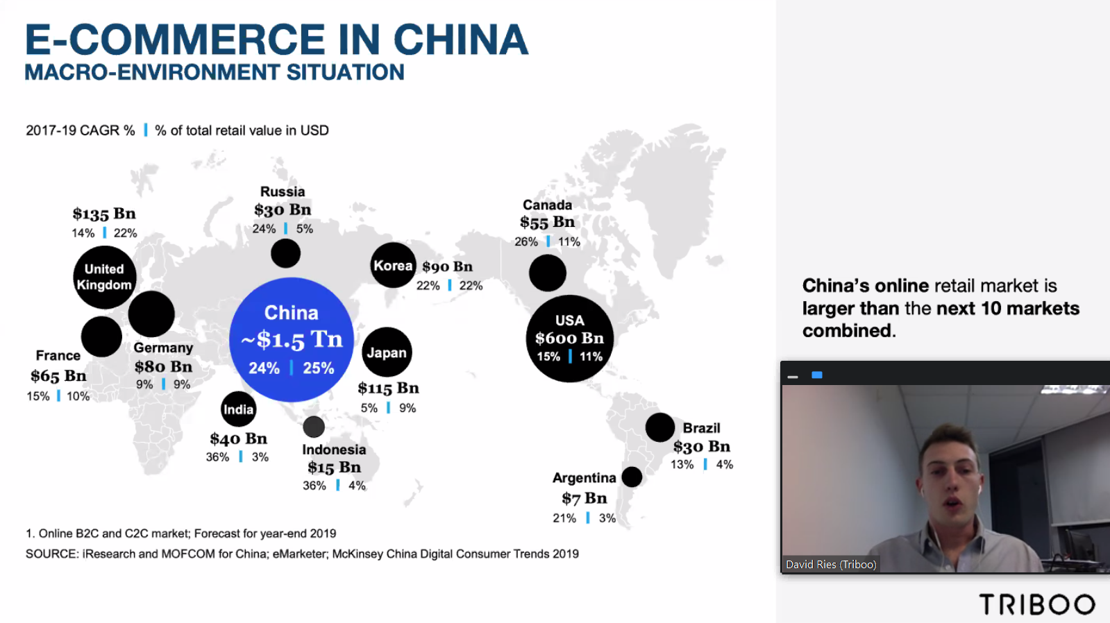 The last speaker, Mr. David Ries, Business development Manager at TRIBOO , went into the details of the Cross-Border e-commerce in China, from platforms of choice to modes of importation, and primary points of consideration for brands contemplating an entry into the Chinese market, including the keystones of a successful strategy.