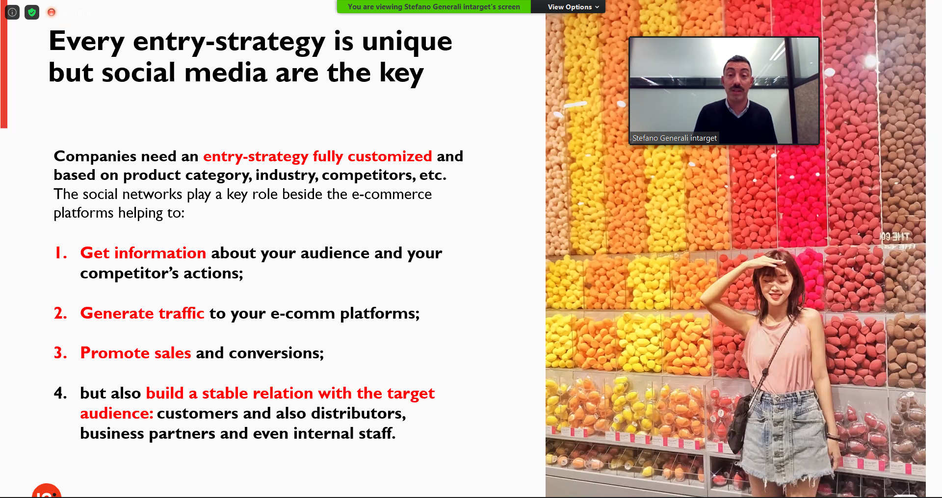 Following, Ms. Ambra Schillirò, Pr and marketing director Social Cloud, analyzed how shopping, in China, is considered more than just a transaction. For this reason, she focused on the importance of influence marketing as a key pillar of digital marketing strategy in China, explaining us the rolo of KOL, KOC and daigou: 3 major players in cross-border influencer marketing.