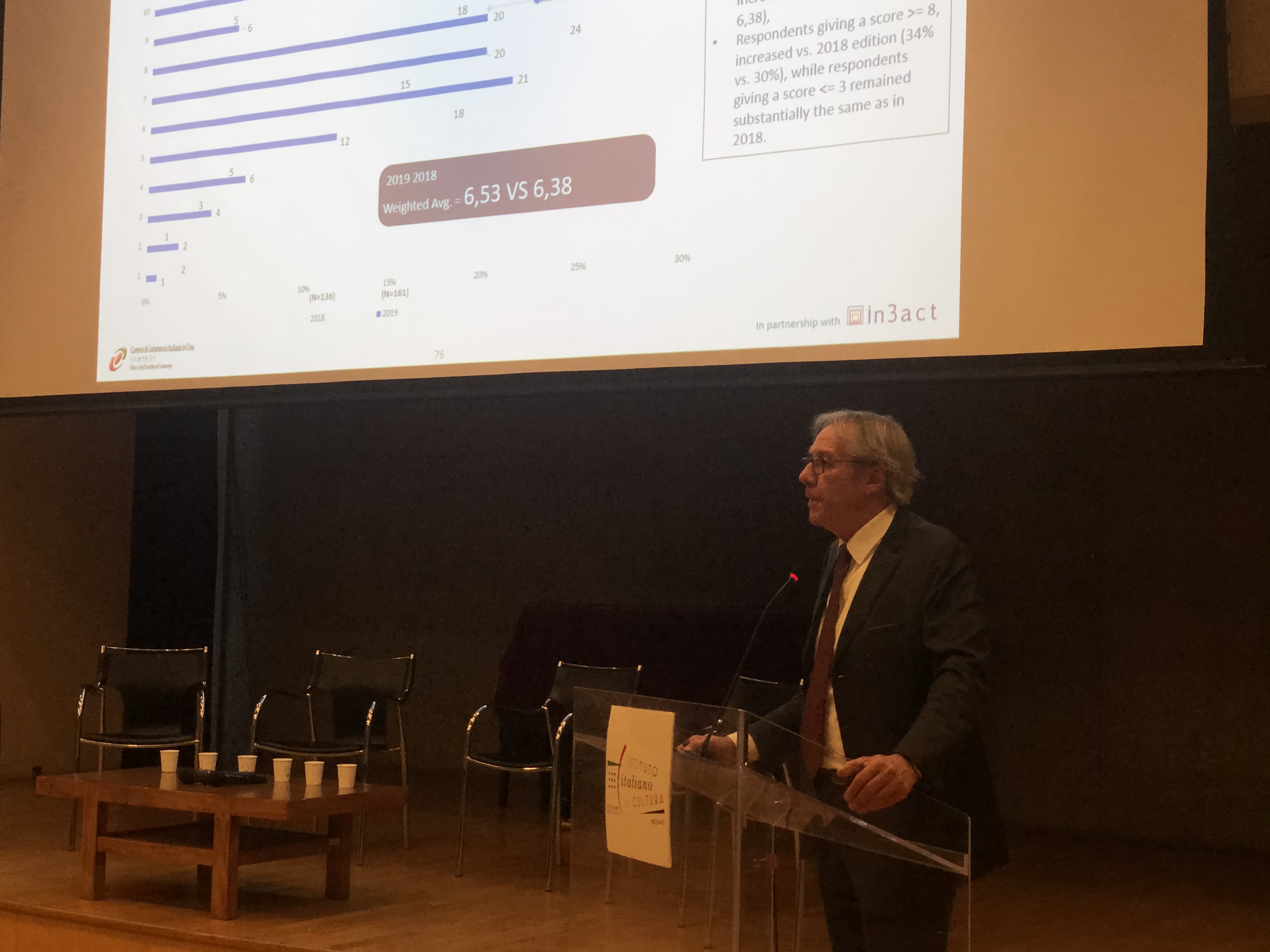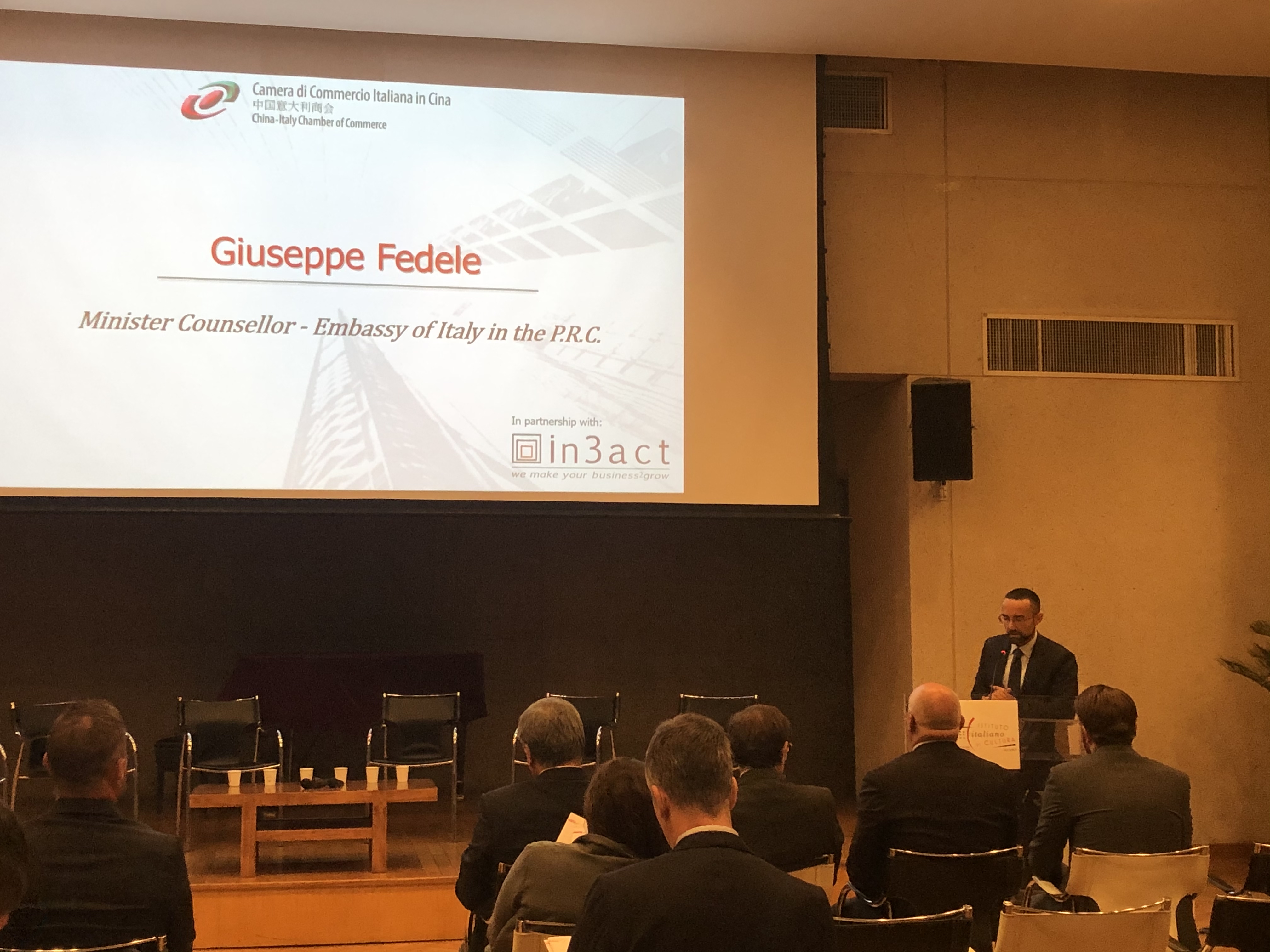After an introduction of  the Minister Counsellor of the Italian Embassy, Giuseppe Fedele, the results of the Business Survey were presented by the CICC Chairman, Davide Cucino and by the CICC Vice-Chiarman and Chairman of In3act, Guido Giacconi.