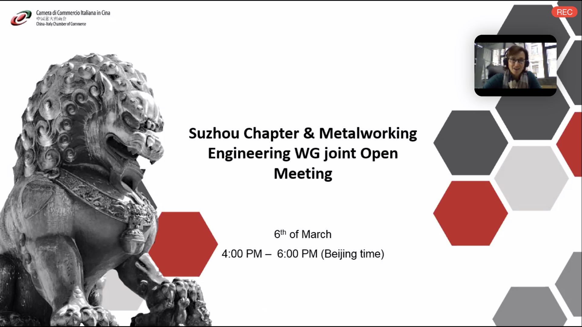 The China-Italy Chamber of Commerce is glad to inform you that the online meeting of the “Suzhou Chapter & Metalworking Engineering WG" was successfully held on Friday, 6th of March.