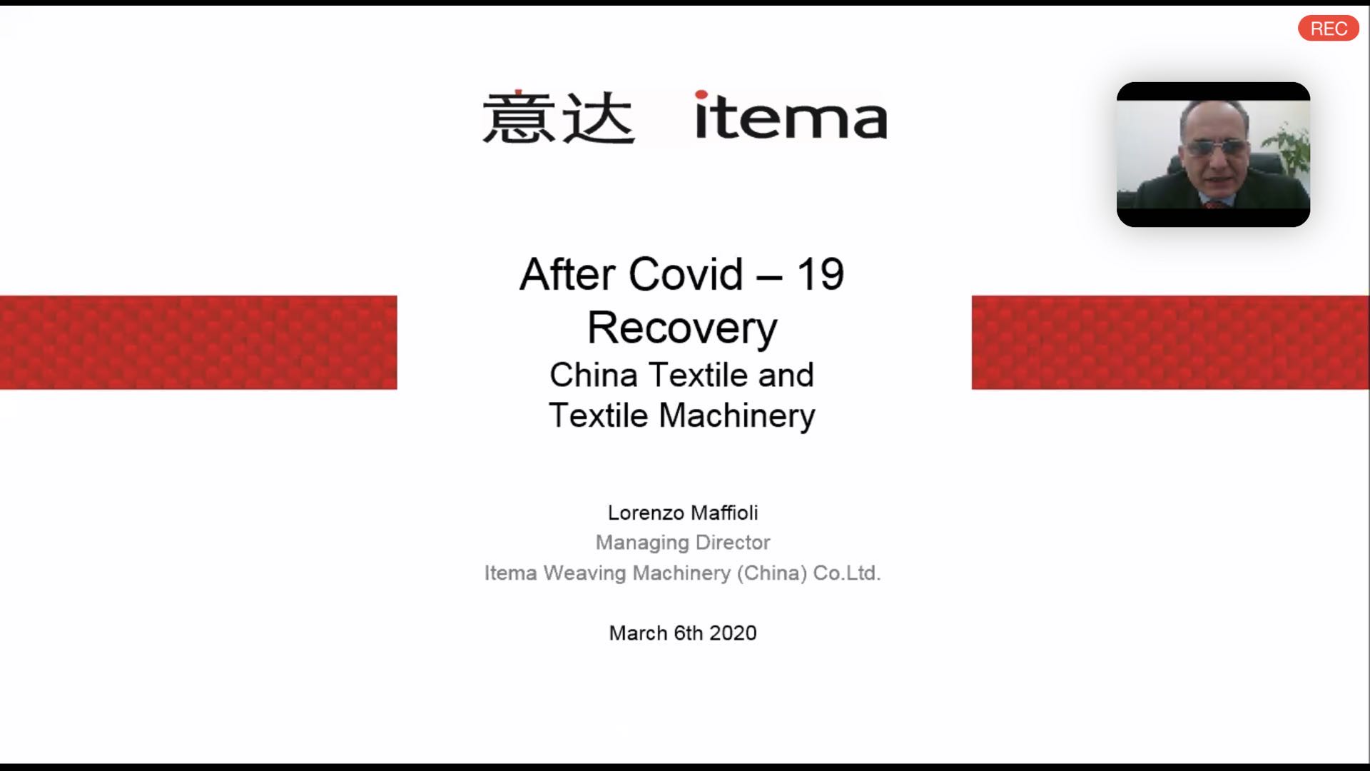 - "After Covid – 19 Recovery China Textile and Textile Machinery" by Lorenzo Maffioli, Managing Director - Itema Weaving Machinery (China) Co.Ltd.
