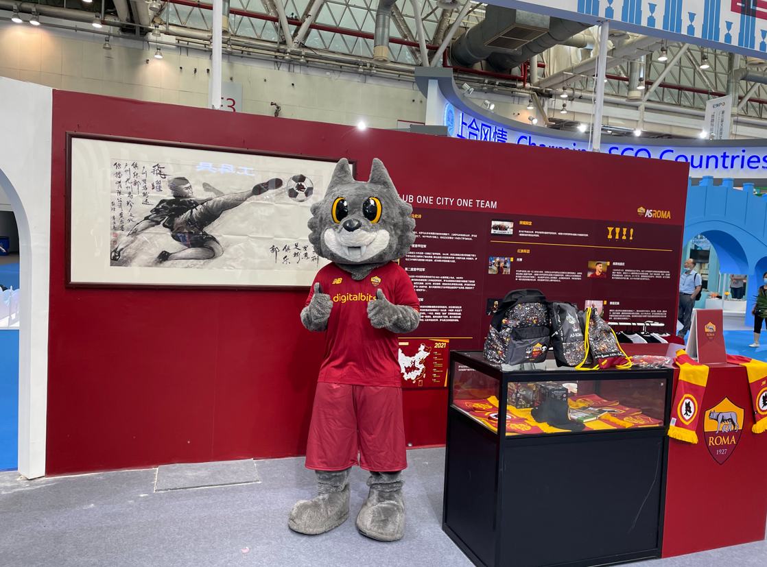 AS Roma Club brought to live their wolf mascot to interact with their fans. One of their fans also brought his Chinese painting to inaugurate the team.