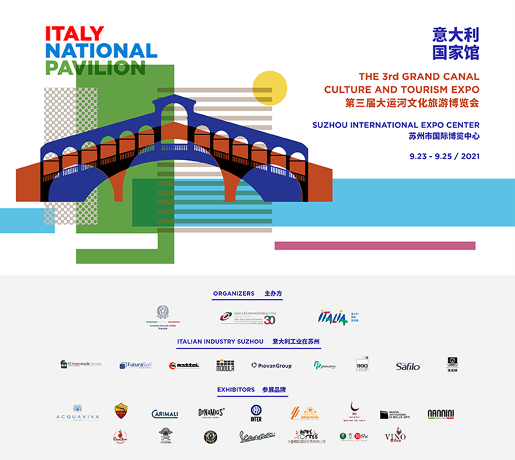 The China-Italy Chamber of Commerce is glad to announce that the 3rd Grand Canal Cultural Tourism Expo closed gracefully in Suzhou on September 25th, with offline traffic visits of more than 136,000 visitors, while online audience of 270 million viewers. As part of this great success, the participation of Italy showcased its industry excellence, beauty of the territory at a world level.