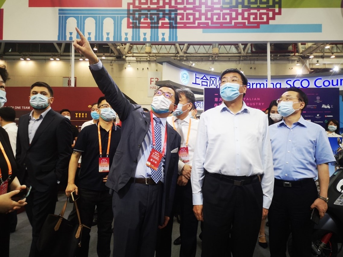 Vice governor of Jiangsu province visited the Italian National Pavilion, a brief introduction of the country and exhibition was provided by CICC Shanghai Office manager Chen Wei.