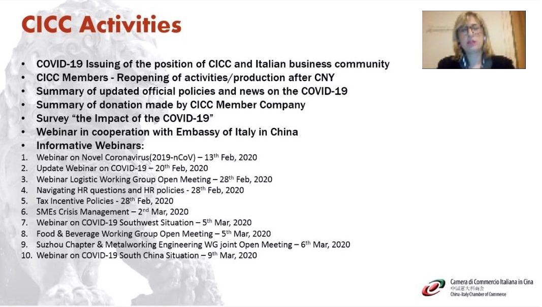China-Italy Chamber of Commerce is glad to inform you that the Webinar on Covid-19 South China situation was successfully held on 9th March, 2020.