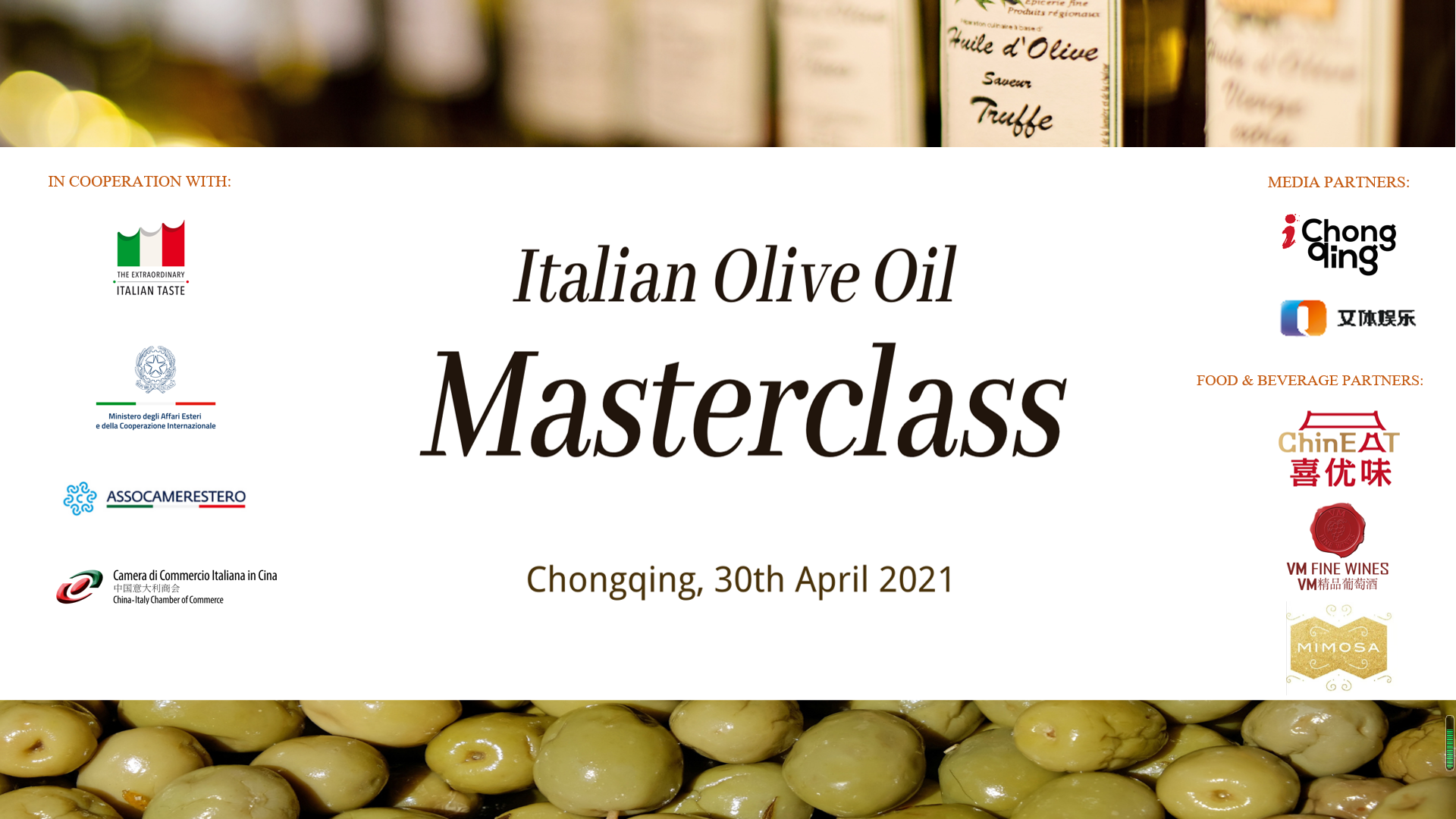 中国意大利商会很高兴通知您“意大利橄榄油”大师班活动已于4月30日在重庆馨乐庭高科两江公寓酒店成功举办。