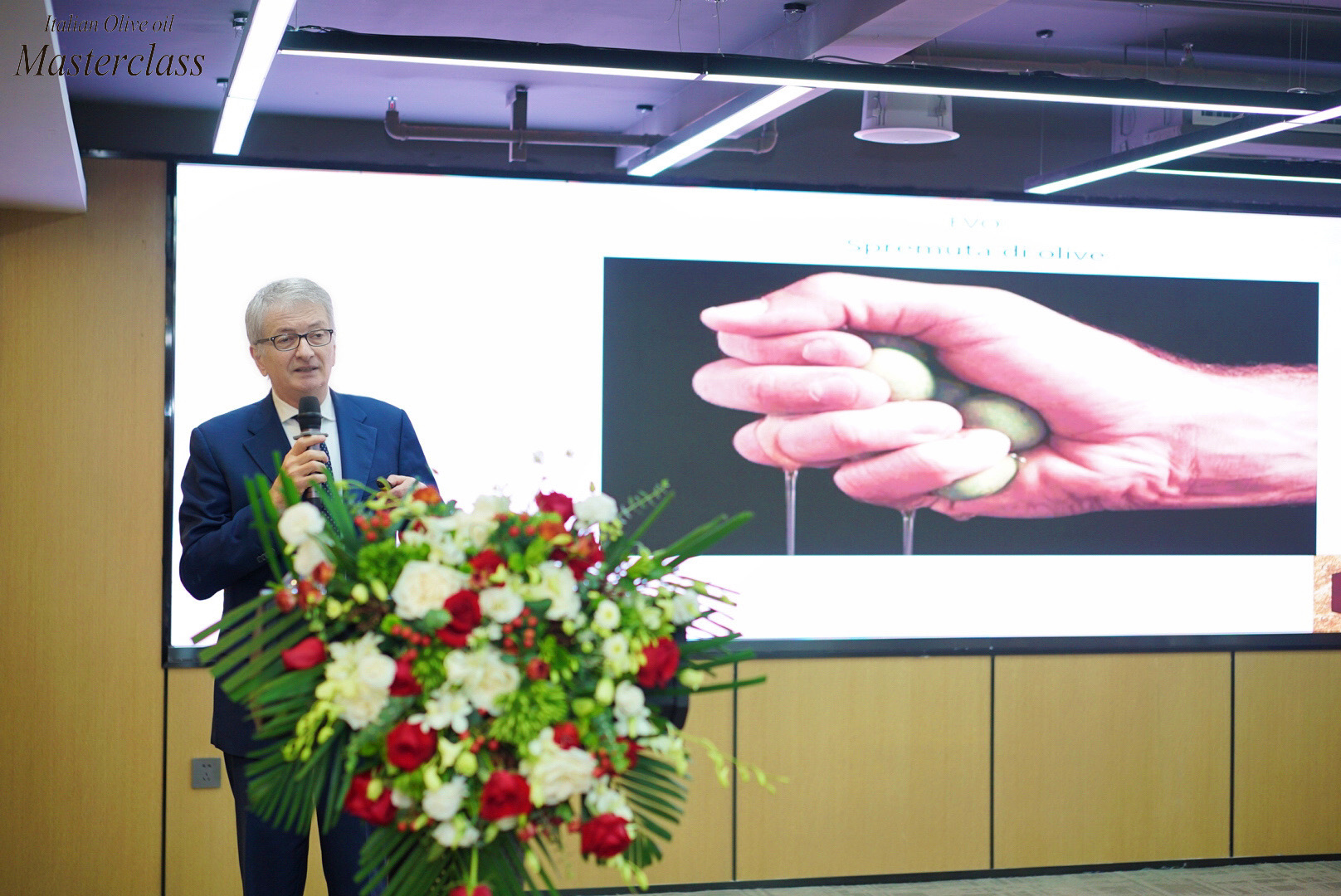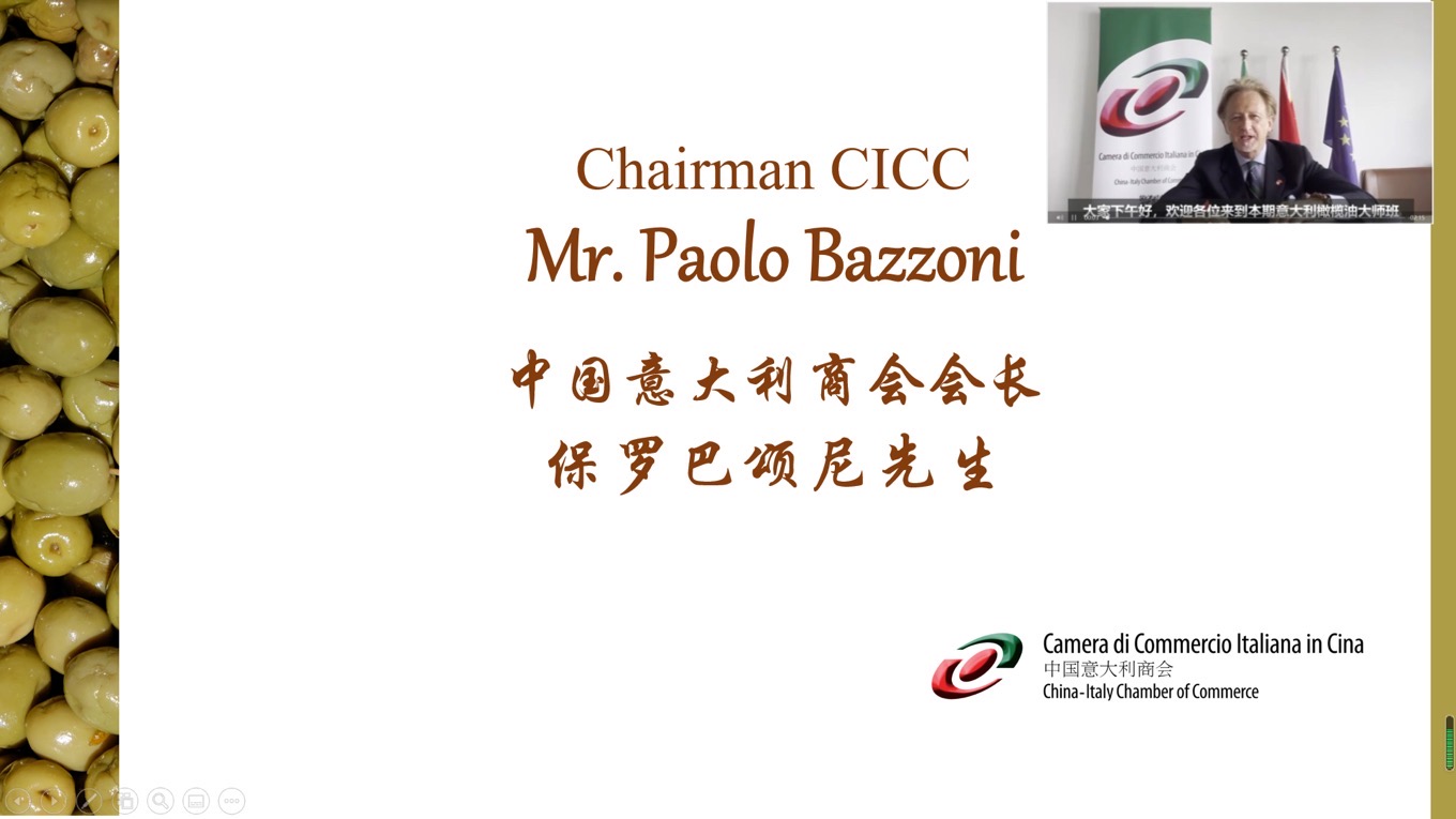 活动开幕式由意大利驻重庆总领事馆副总领事康达城先生、中国意大利商会会长保罗巴颂尼先生分别为此次活动致欢迎辞。康达城先生在讲话中谈到了了中国市场上的“意大利制造”产品,并强调识别产品原产地的重要性。 保罗巴颂尼先生通过视频预祝本次意大利橄榄油大师班活动圆满成功,另外他强调,意大利在优质农业食品生产方面在欧洲排名第一,希望在中国和意大利之间进行越来越多的餐饮业建设性交流。