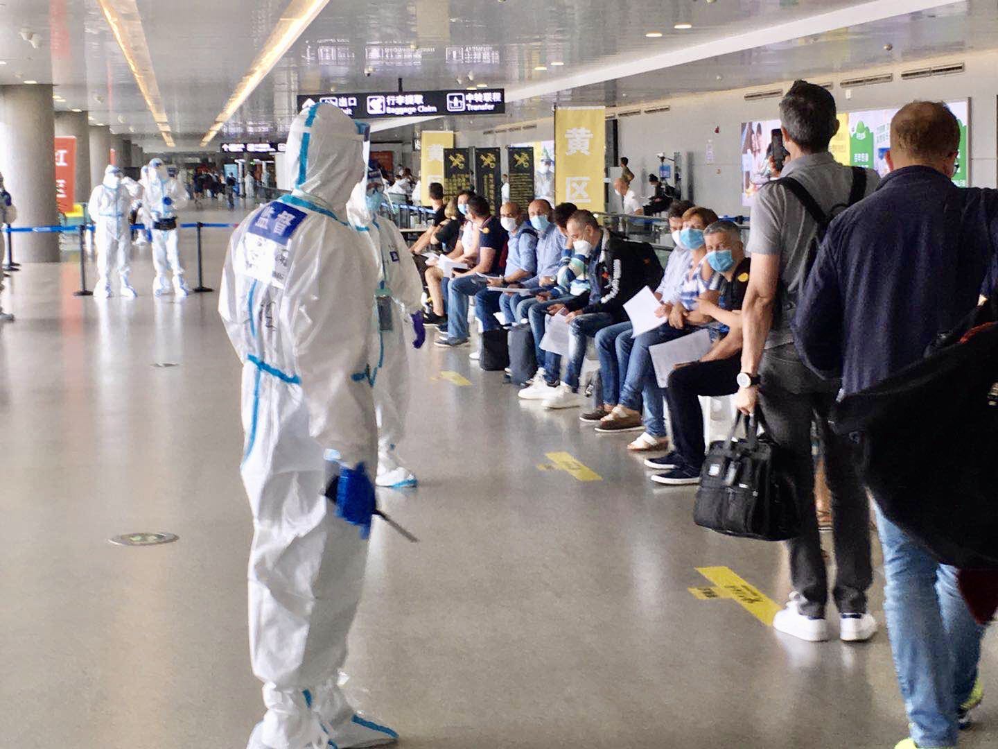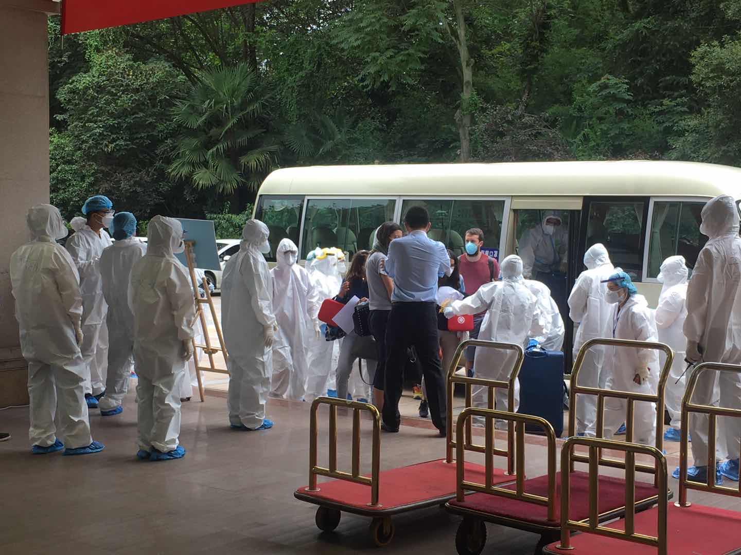 本次航班乘客在通过海关以前,均接受了COVID-19抗体免费检测。检测之后,航班乘客在相关人员的陪同之下,搭乘指定巴士,到达指定酒店隔离。