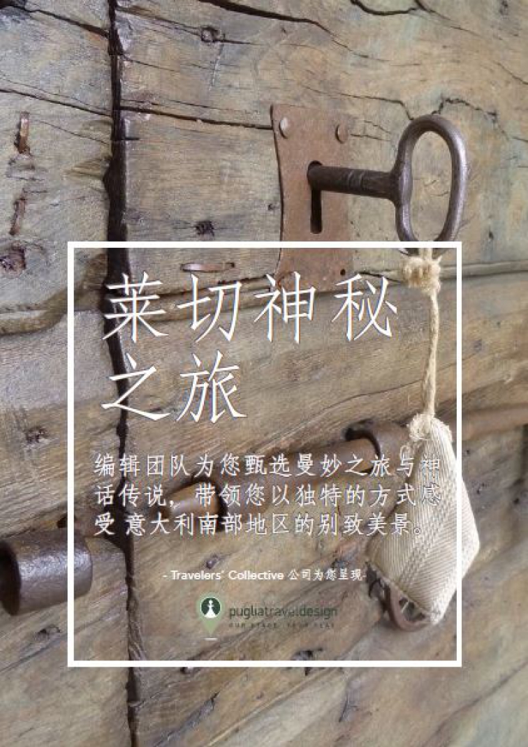 意大利宝(只接受定制游– www.italybao.com)推出其姊妹品牌《普利亚大区旅游设计》(www.pugliatraveldesign.com),这个新近推出的项目旨在促进有意识的高端旅游,深入意大利的鞋跟-普利亚大区。