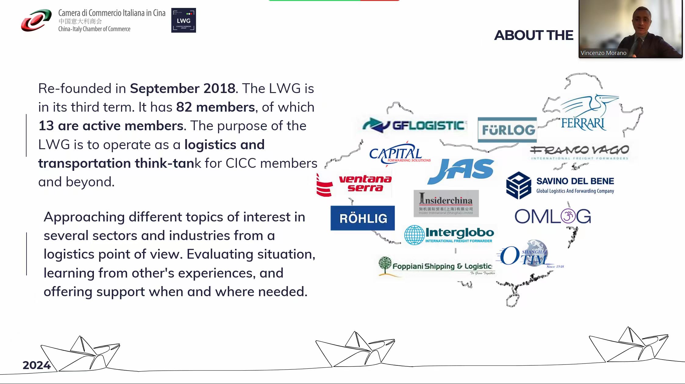 The webinar was opened by Vincenzo Morano, CICC LWG Coordinator and Founder and Executive Director at Insider China, who welcomed the attendees and provided a brief introduction to the Logistics Working Group and its activities.