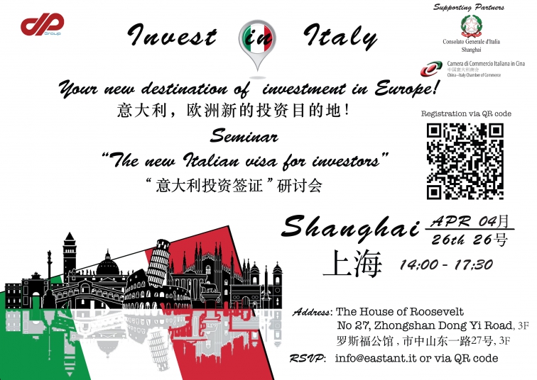 SAVE THE DATE! April 26th, Shanghai - “Invest in Italy: new Italian visa for investors” Seminar