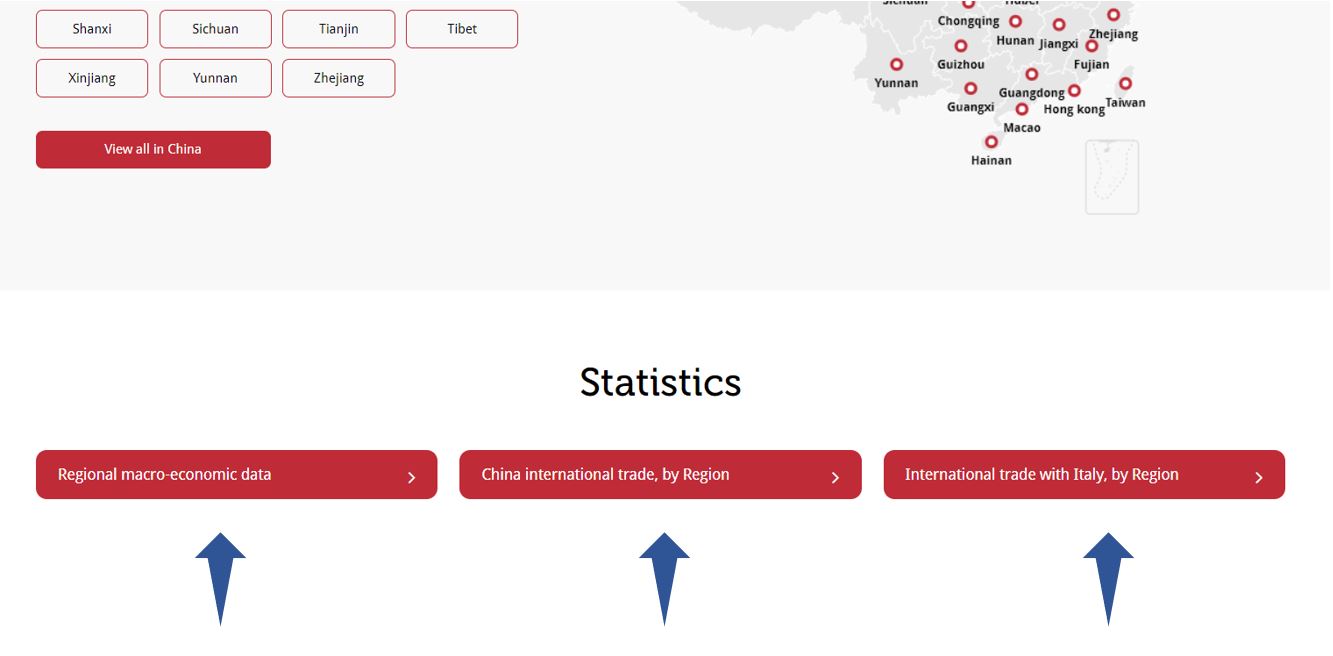 3. In addition to this, you will also have the opportunity to consult economic data on Italy and China, through the three buttons at the bottom of the home page of the business map.