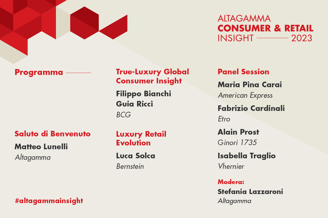 作为中国意大利商会在意大利的合作支持伙伴计划的一部分,保罗.巴颂尼会长出席了高端品牌基金会于7月5日周三在米兰卡里布罗基金会会议中心举办的 "2023年消费者和零售业洞察力"论坛,论坛围绕奢侈品领域消费者和零售业的演变展开分析。
