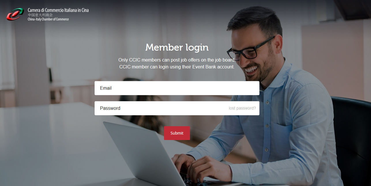 中国意大利商会会员可使用活动银行邮箱和密码登录招聘平台,上传招聘信息并免费访问简历数据库
