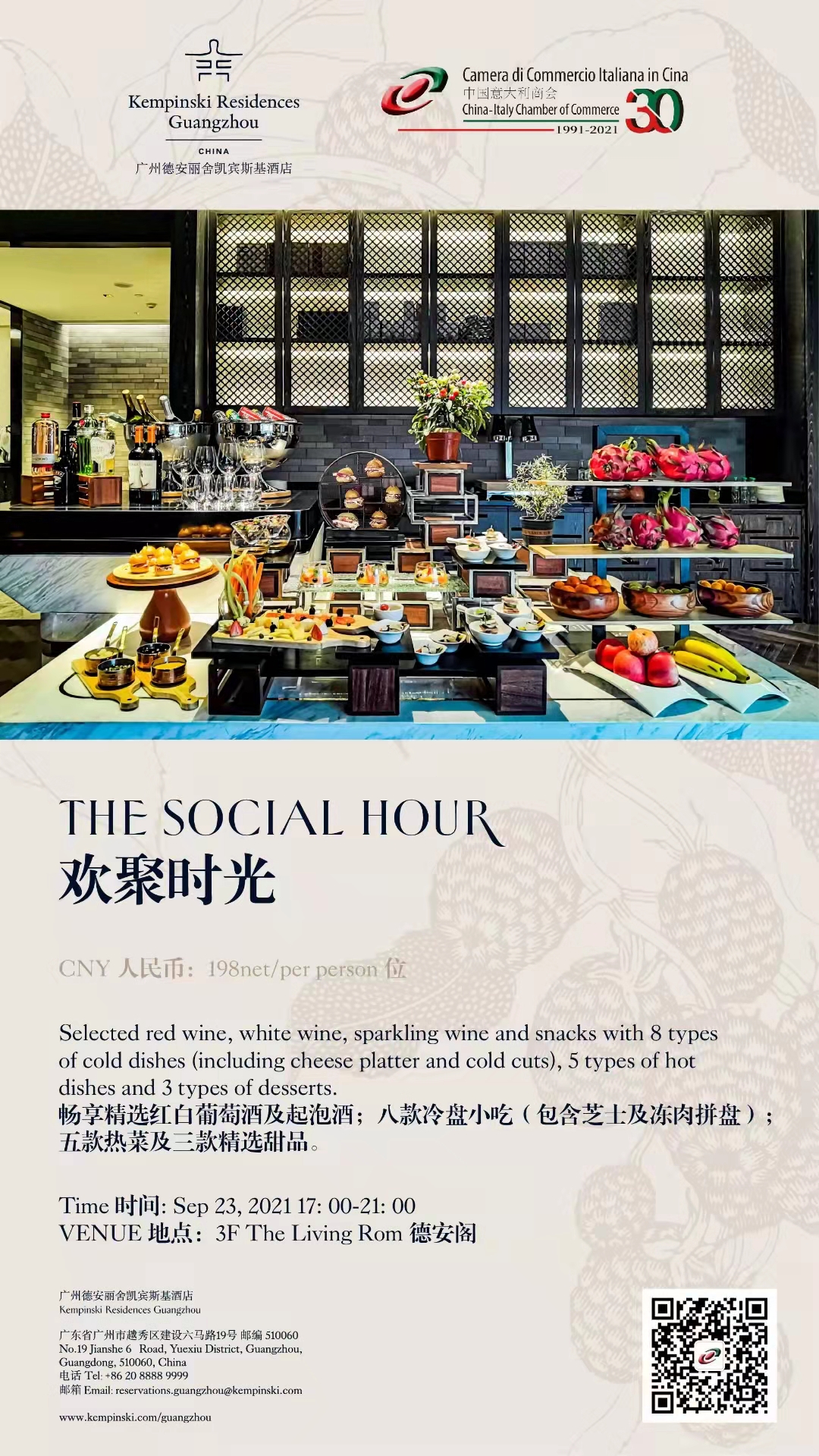 19:00 – 21:00 Dinner and Company Networking at Kempinski Residences Guangzhou 广州德安丽舍凯宾斯基No.19 Jianshe 6th Road · Yuexiu District · Guangzhou ·510060 · China中国广州市越秀区建设六马路19号 Tickets available at the venue of 198 RMB each not included in the event price.